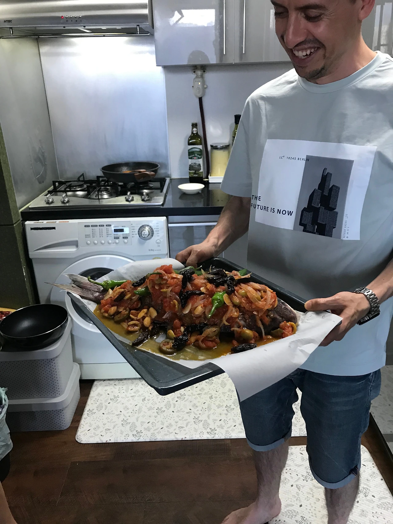얼마 전에는 B 부부와 새로운 멤버 H, 알피와 저 이렇게 다섯이서 작은 홈파티를 했어요. 이 날의 메인 요리는 알피가 맡았어요. 알피는 단번에 메뉴를 정했어요.