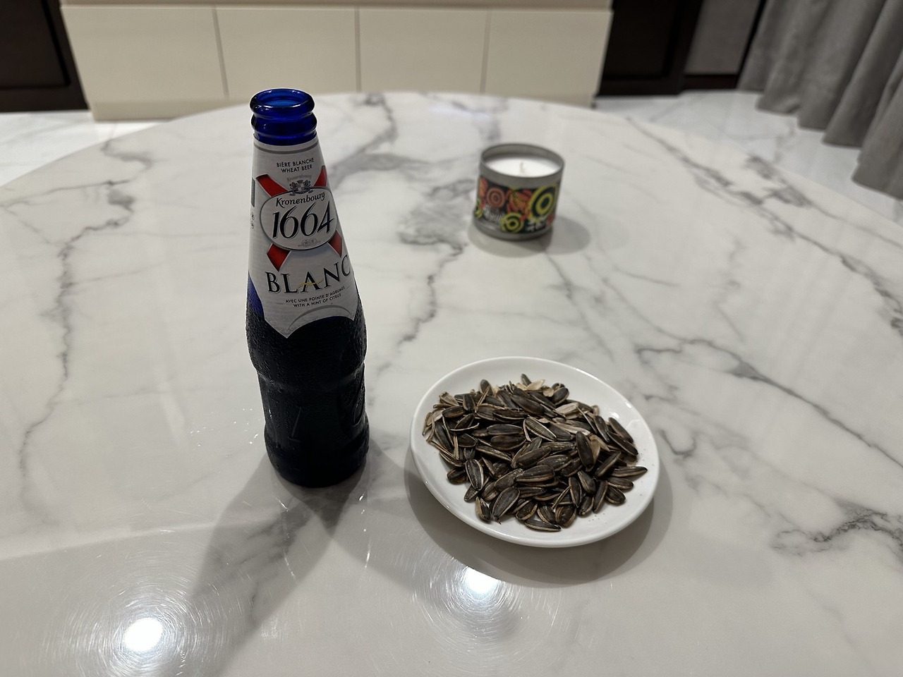 자기 전에 시원한 맥주에 해바라기씨를 까먹으면서