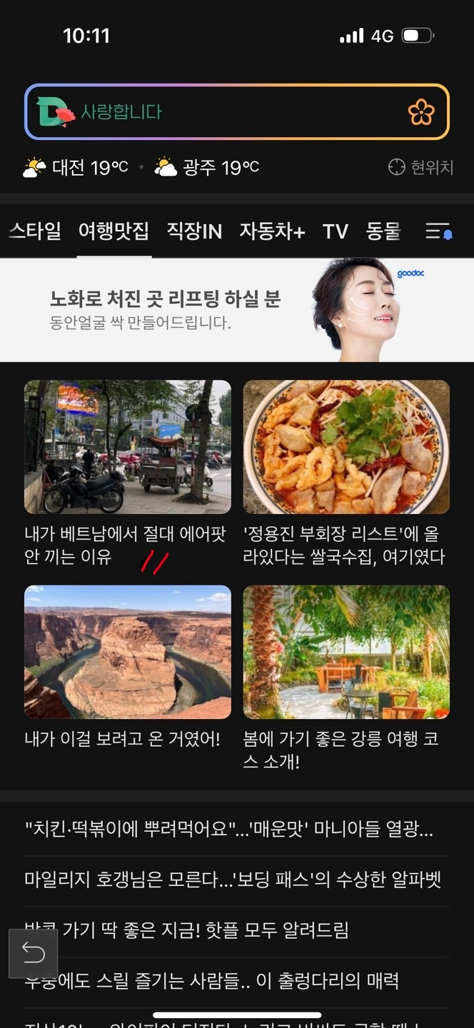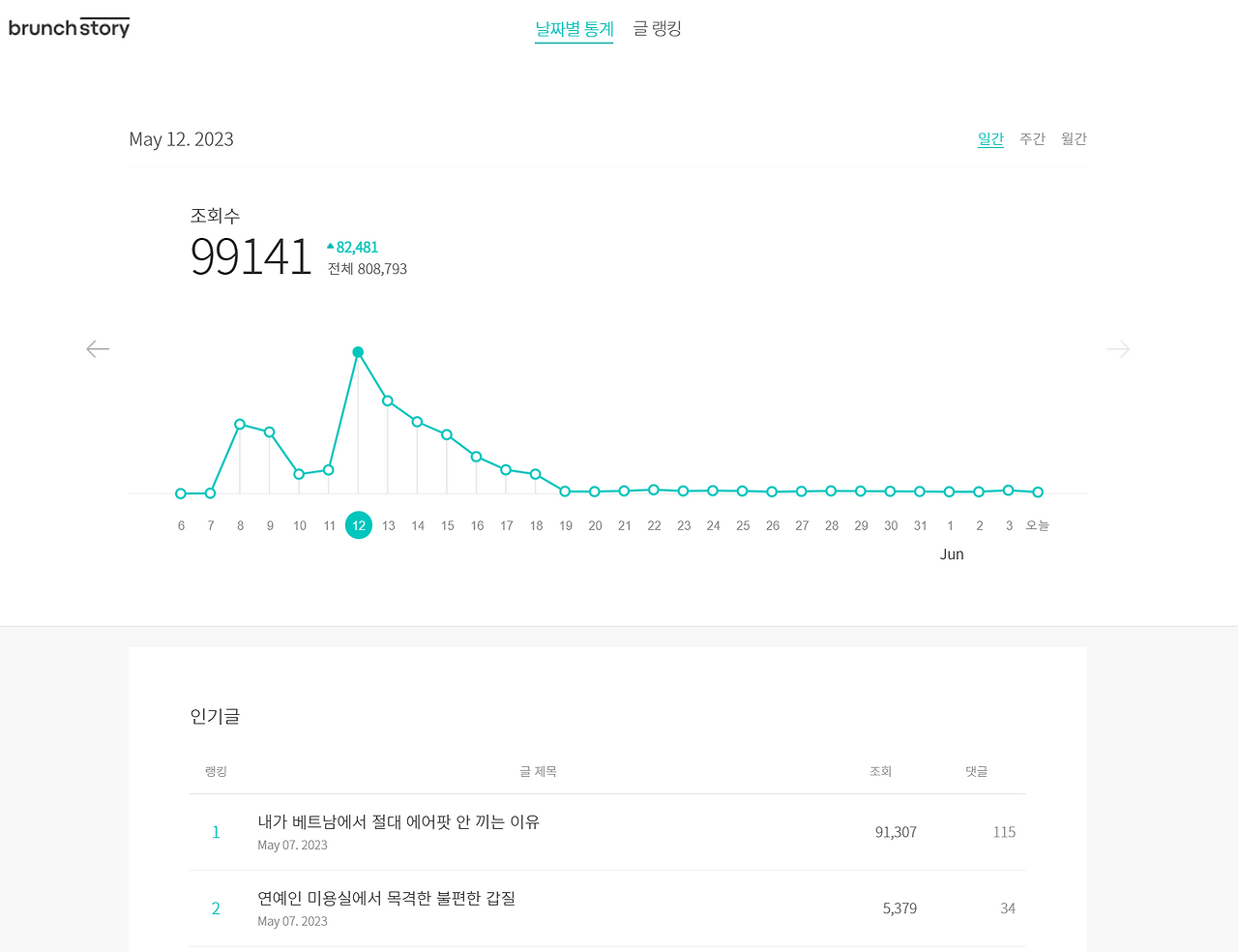 그러던 와중 지난달 중순 어떤 글이 다음 메인에 노출되었는데