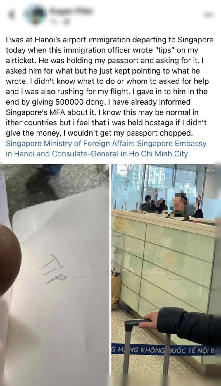 이후 싱가포르 외교부에 신고하여 해당 심사관에 대한 수사 중이라는 기사였다.