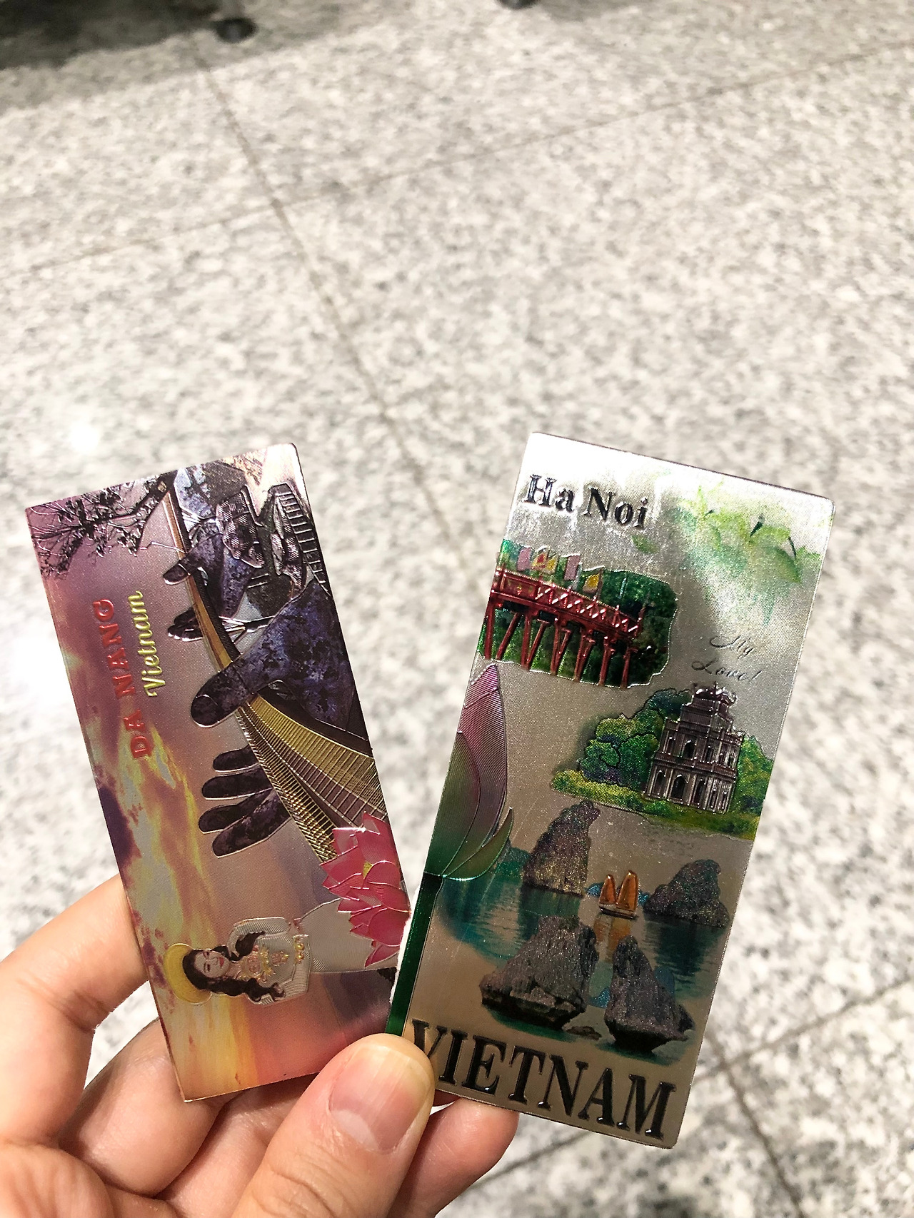면세점을 둘러보다가 냉장고 자석 두 개를 샀다.