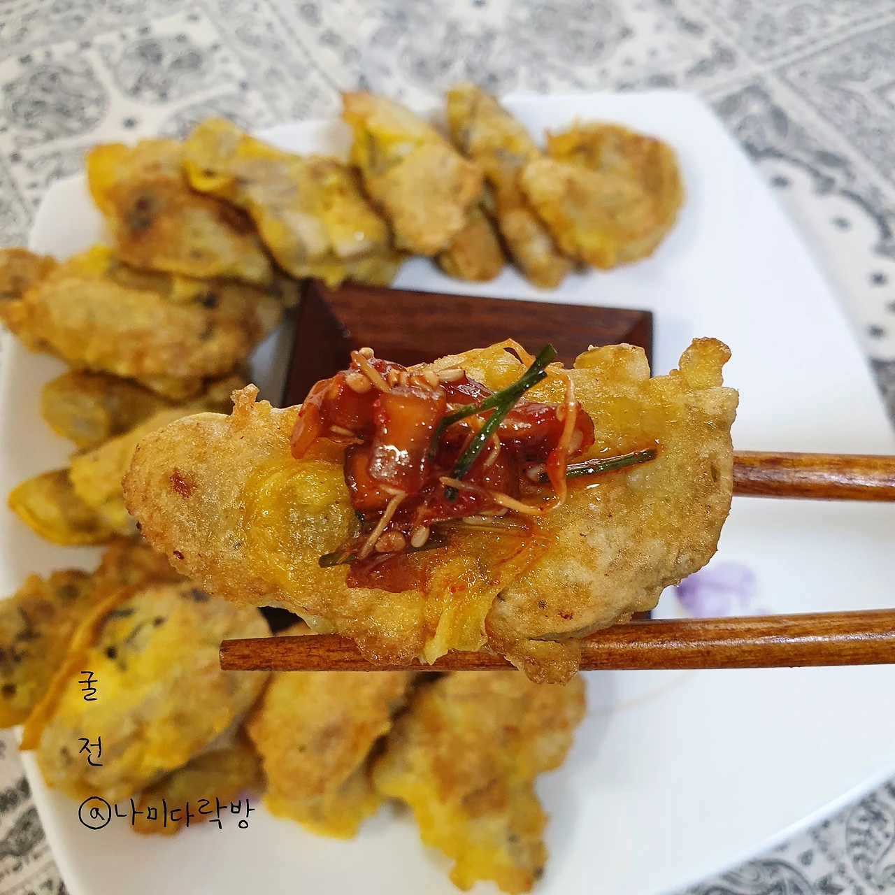 굴전만들기재료 : 굴 약간 부침가루1컵 계란1알 식용유3스푼<어른수저기준입니다.>