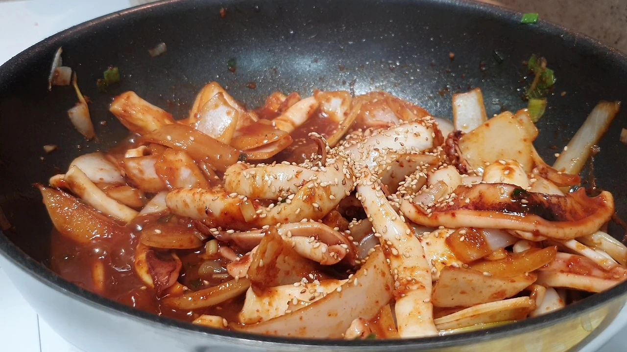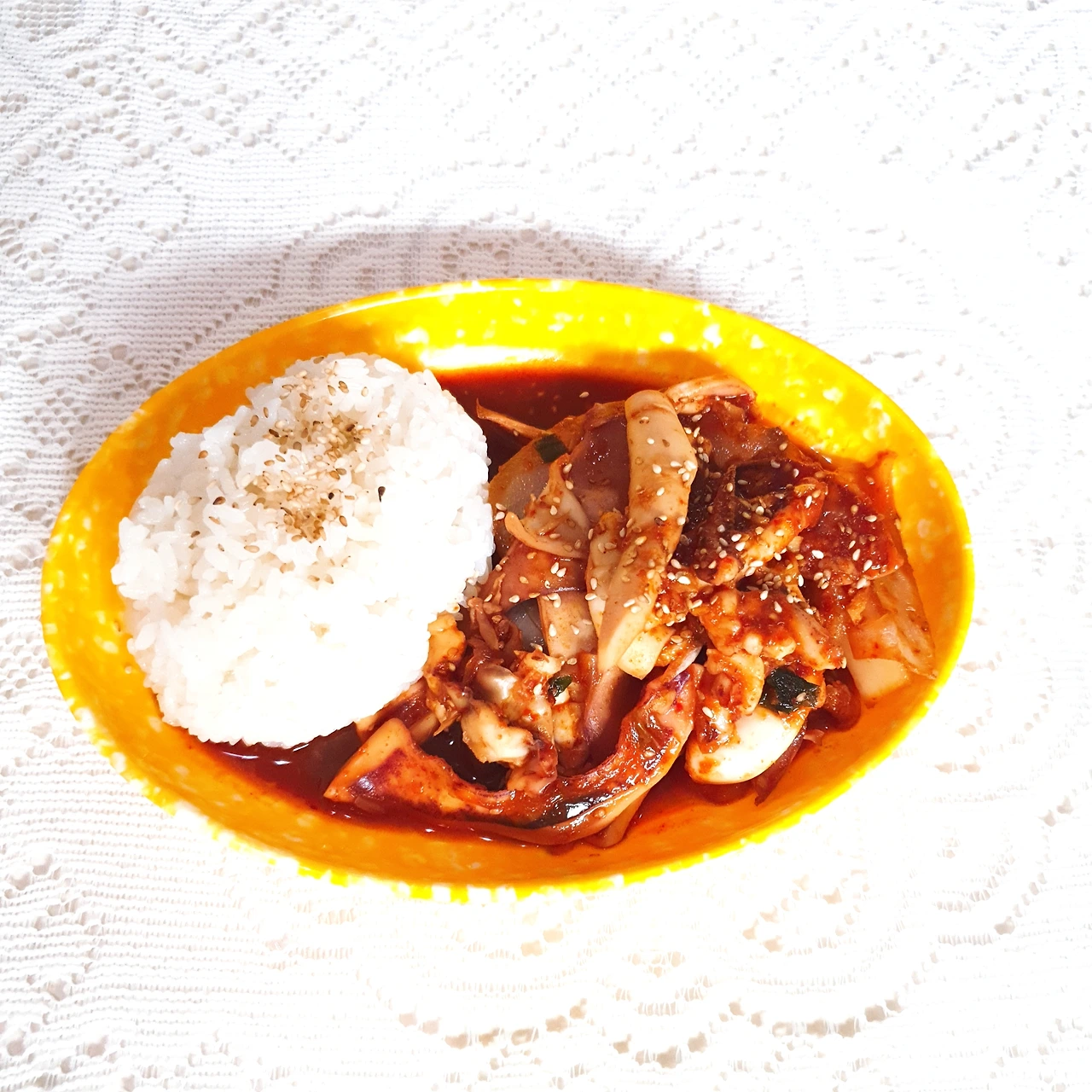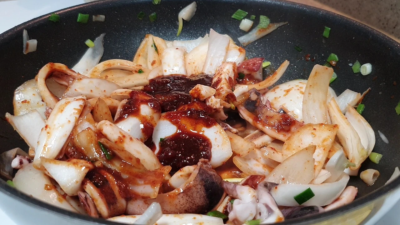 오징어볶음재료 재료 : 오징어 300g 양파 1개 대파 1개 식용유 2스푼양념재료 : 고추장 2스푼 고춧가루 1스푼진간장 5스푼 마늘 1스푼 맛술 1스푼 설탕 1스푼<어른 수저 기준입니다.>