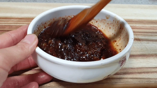 고추장 2스푼 고춧가루 1스푼진간장 5스푼 마늘 1스푼 맛술 1스푼설탕 1스푼