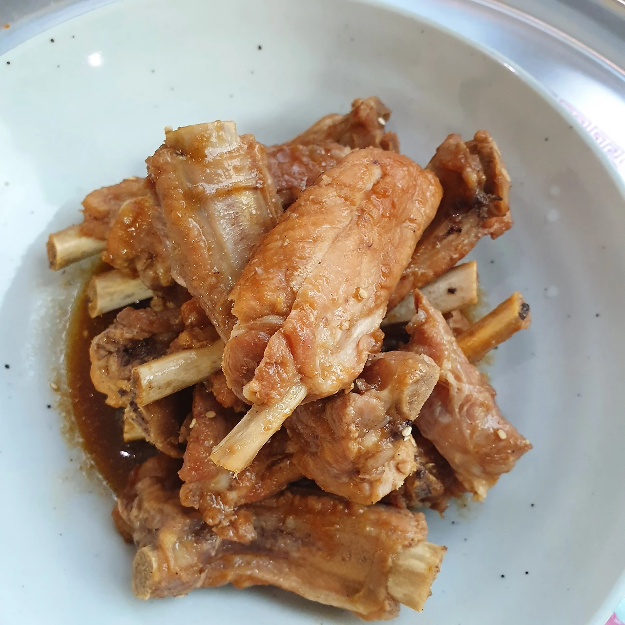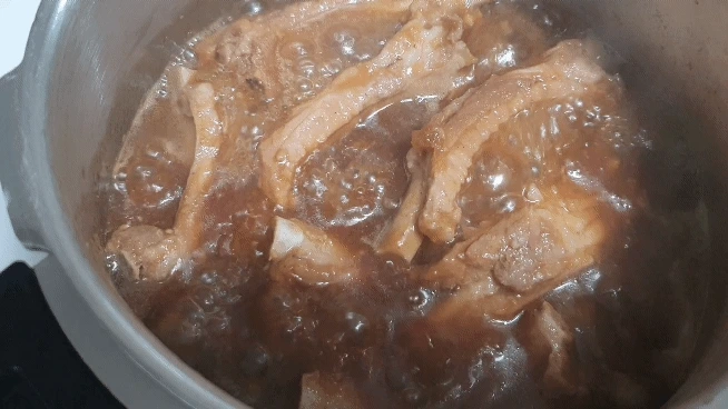 돼지 등갈비 재료 재료 : 등갈비 소갈비 양념 1컵 진간장 5스푼 양파 1개 배반 쪽마늘 1스푼 소주 1컵