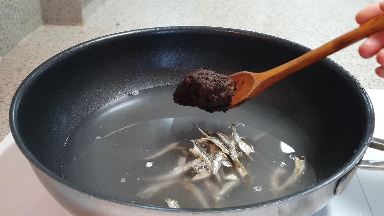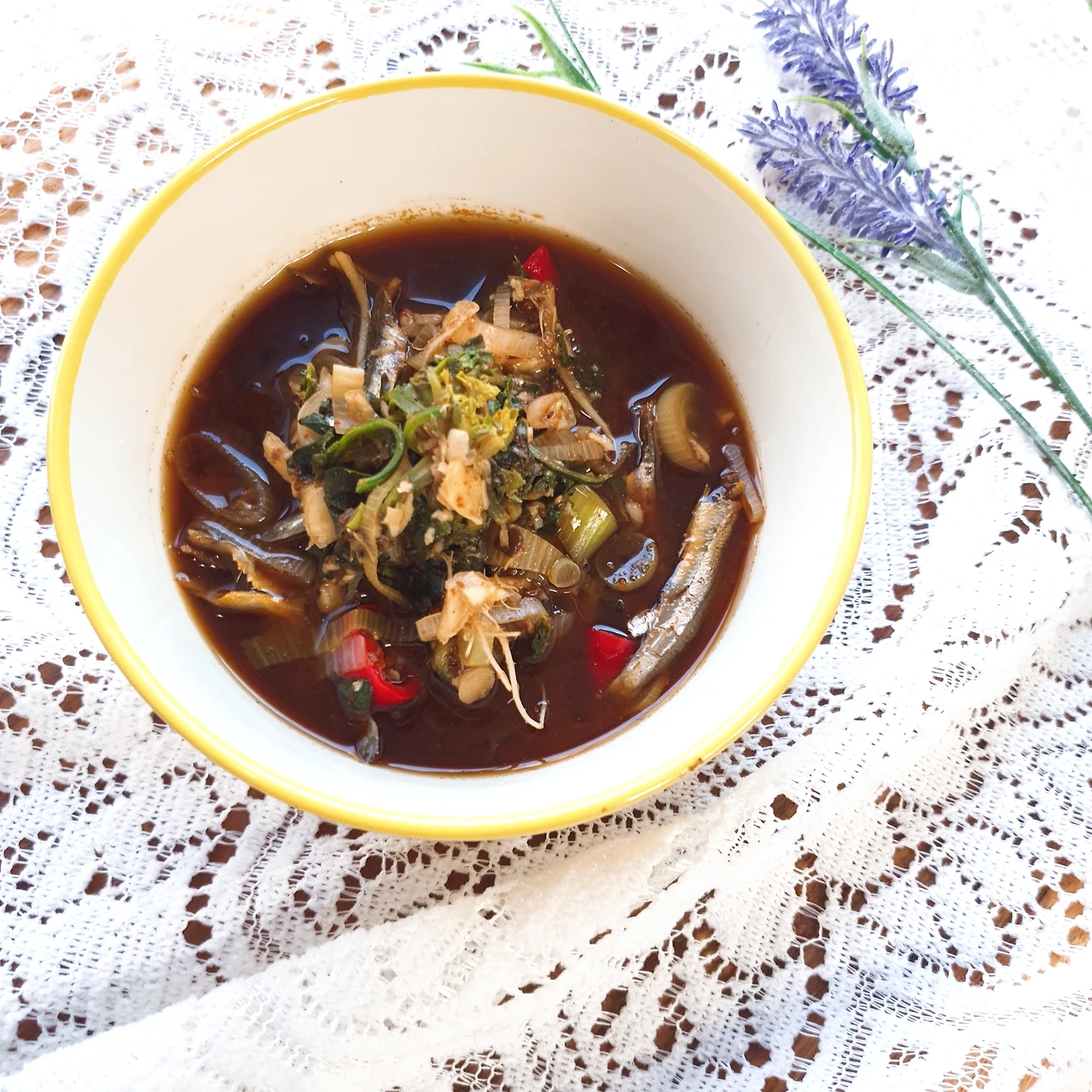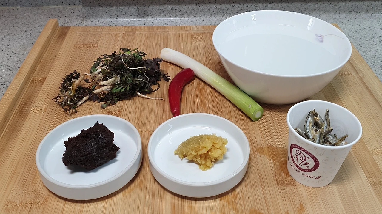 재료 소개 재료 : 냉이 2컵 멸치 대파 청양고추 약간 된장 1스푼 간 마늘 1스푼 쌀뜨물 4컵
