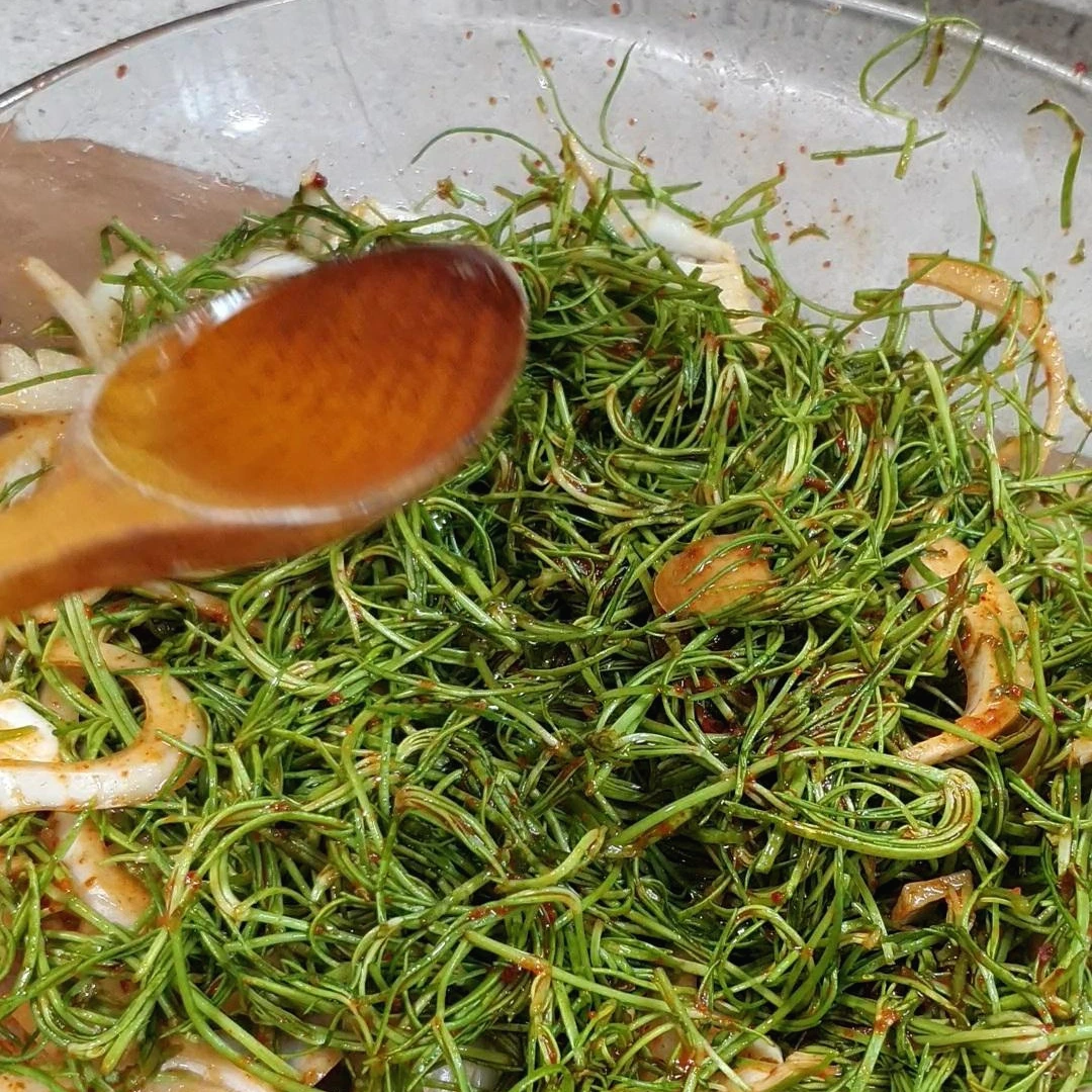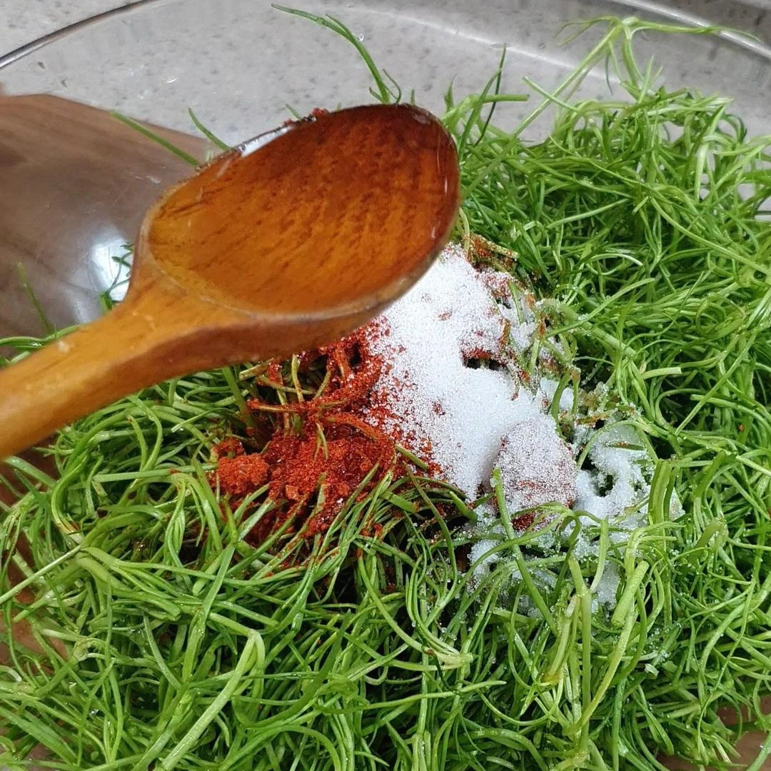 세발나물 양념하기