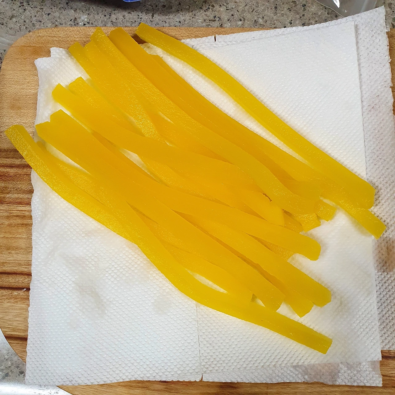 물로 한번씻은 후 키친타올로 물기를 제거하고 잘라주시면 됩니다.