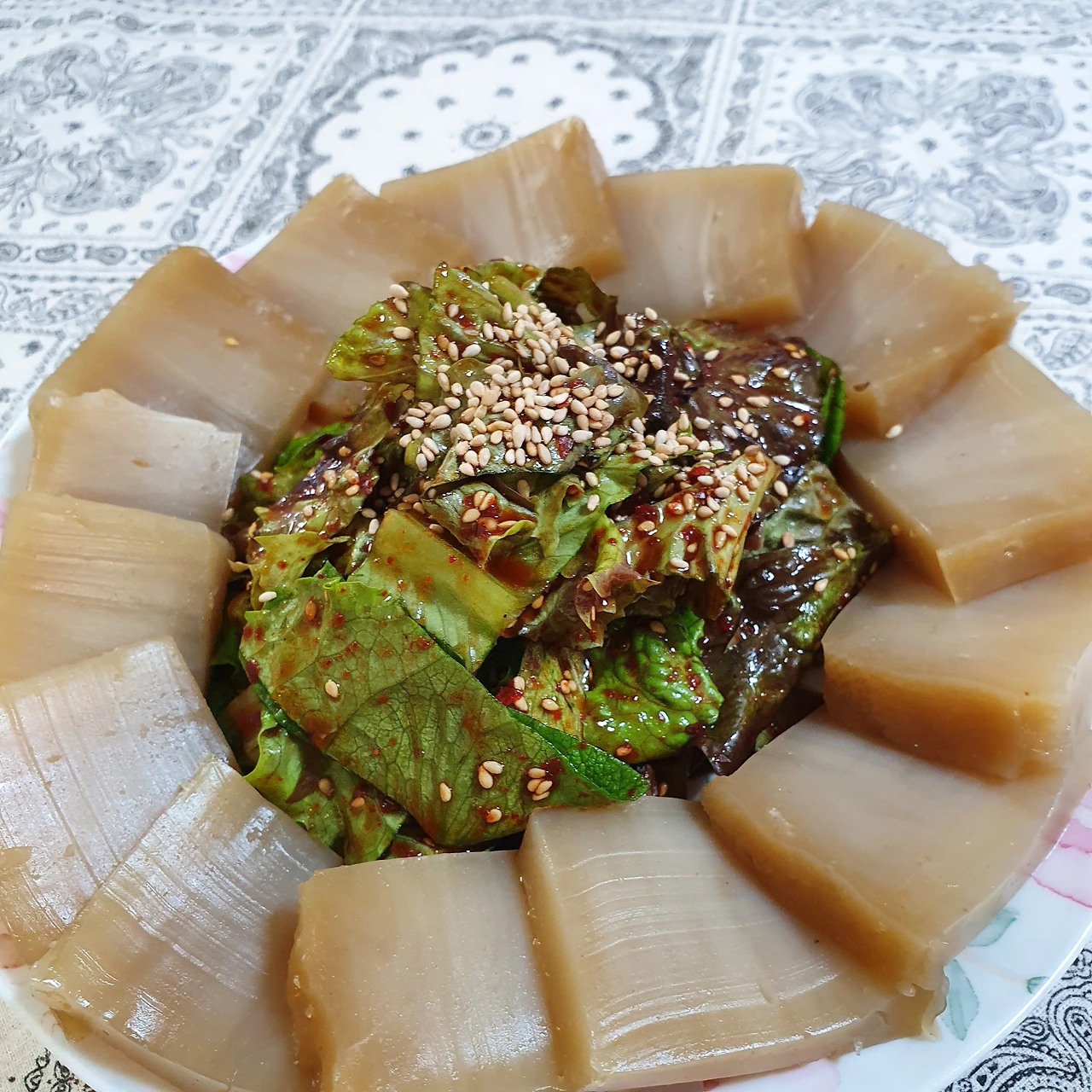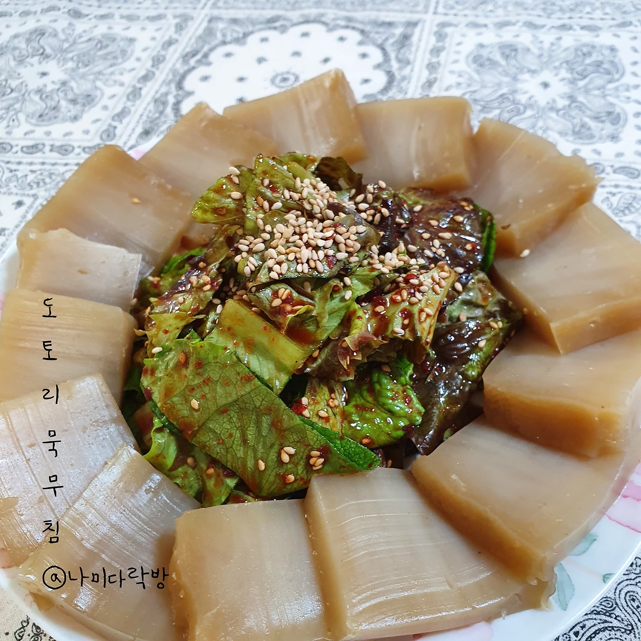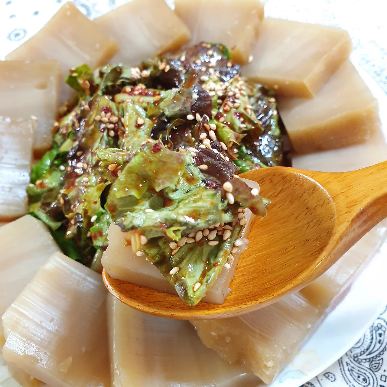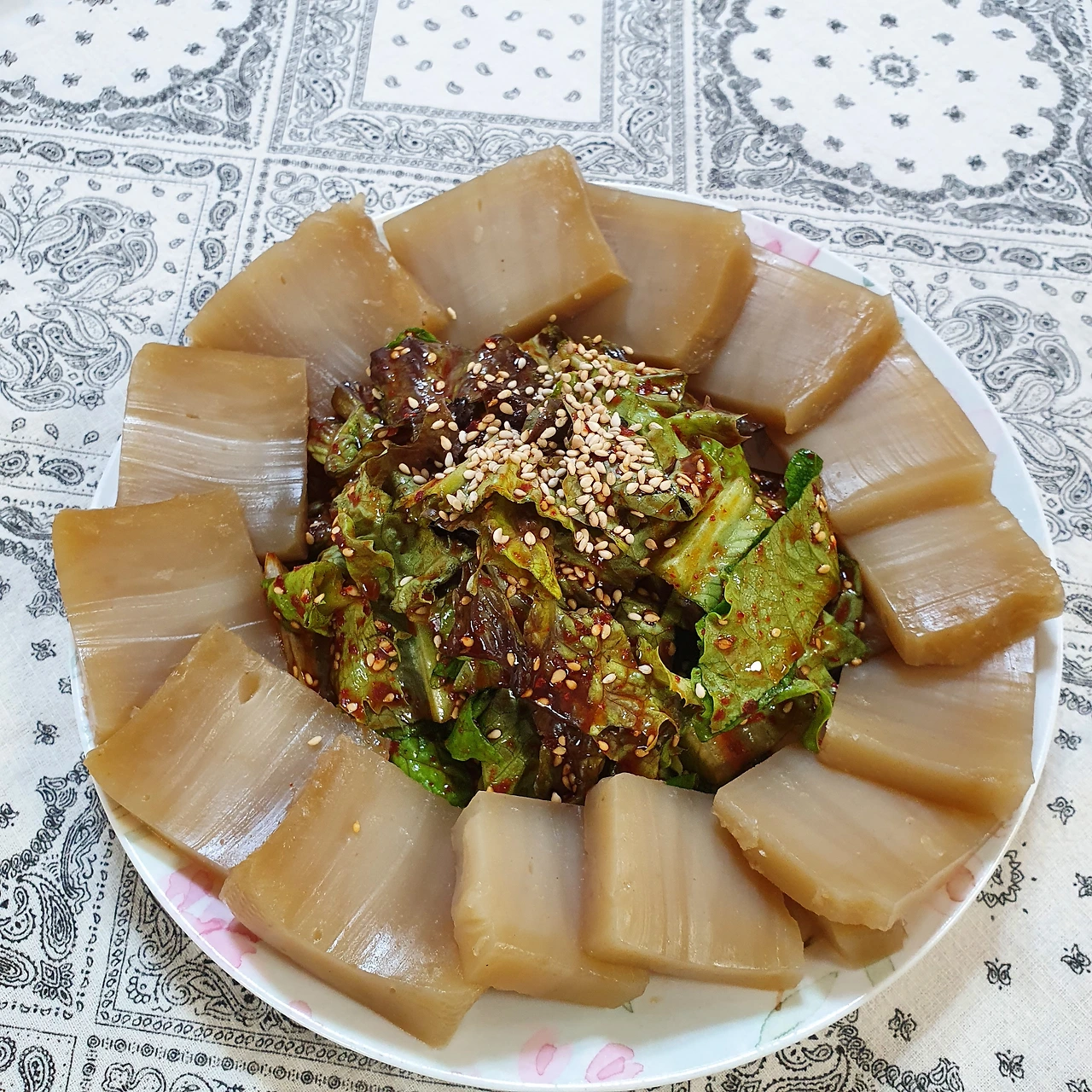 도토리묵무침만들기재료 : 도토리묵 상추양념장재료 : 진간장4스푼 올리고당1스푼 설탕1스푼 매실청1스푼 들기름1스푼 깨1스푼<어른수저기준입니다.>