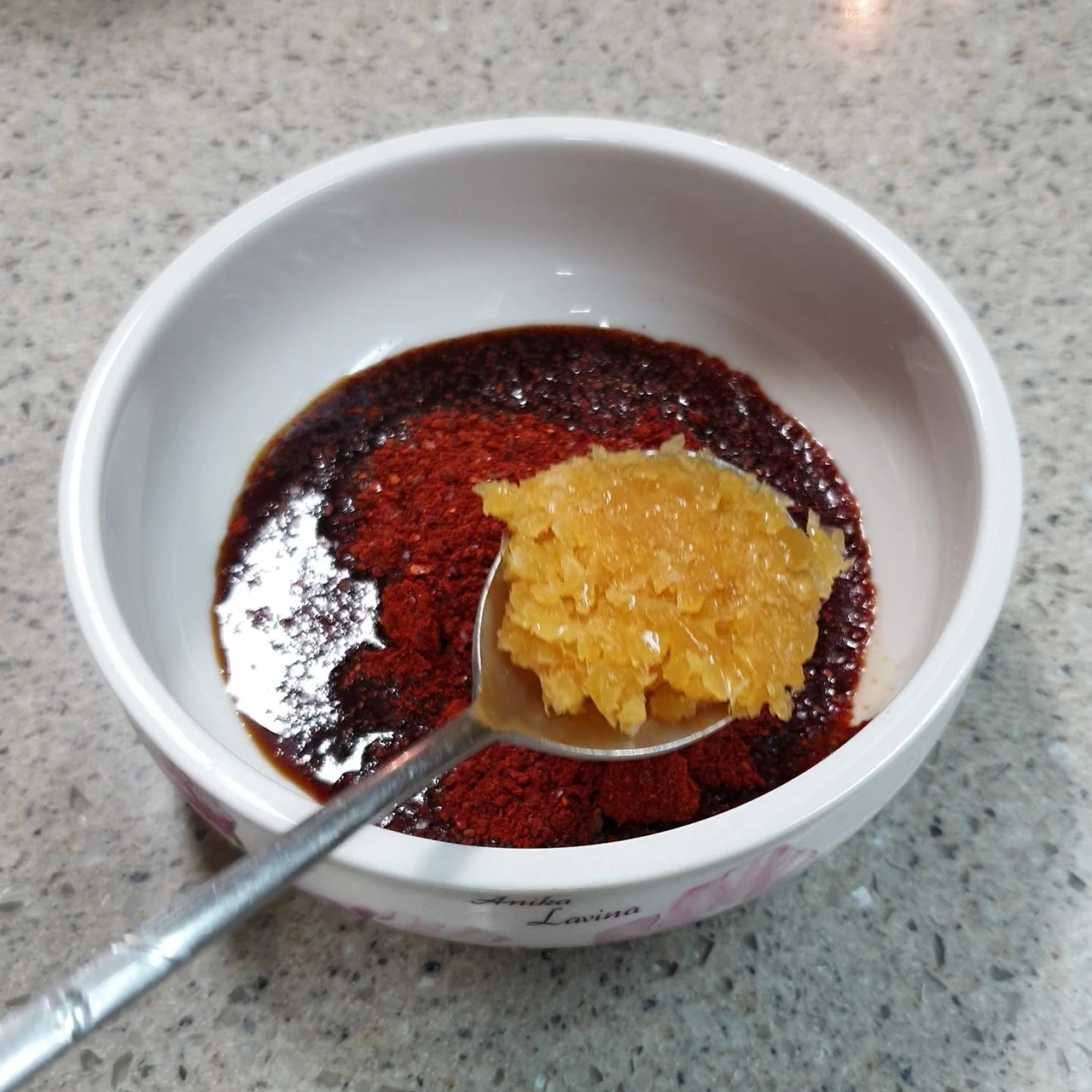 양념재료 : 고추장2스푼 고추가루1스푼 매실청2스푼 마늘1스푼