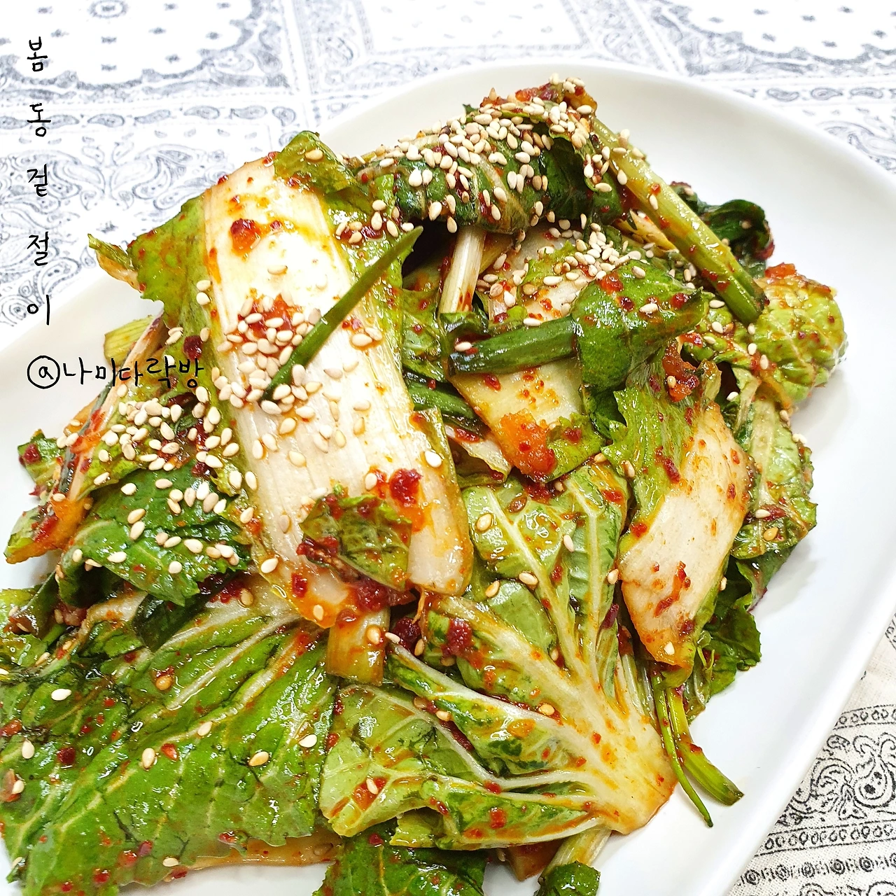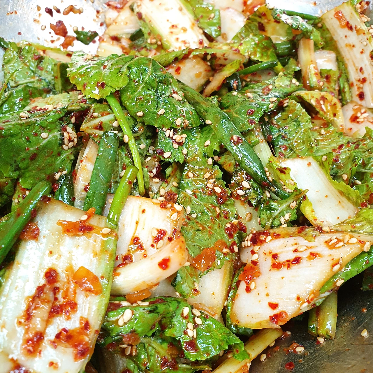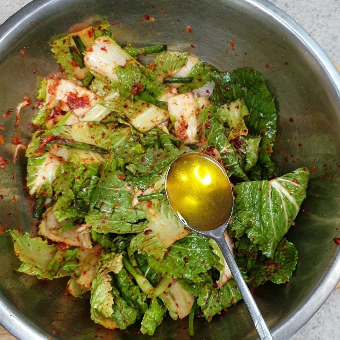 봄동 겉절이 만들기재료 : 봄 동한 덩어리 쪽파양념재료 : 매실청 2스푼 액젓 1스푼 진간장 2스푼 고춧가루 2스푼 마늘 1스푼 새우젓 약간 설탕 1스푼 깨 1스푼 마지막에 들기름 2스푼 <어른 수저 기준입니다>