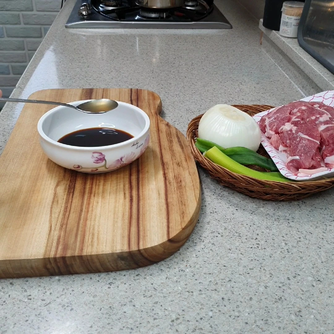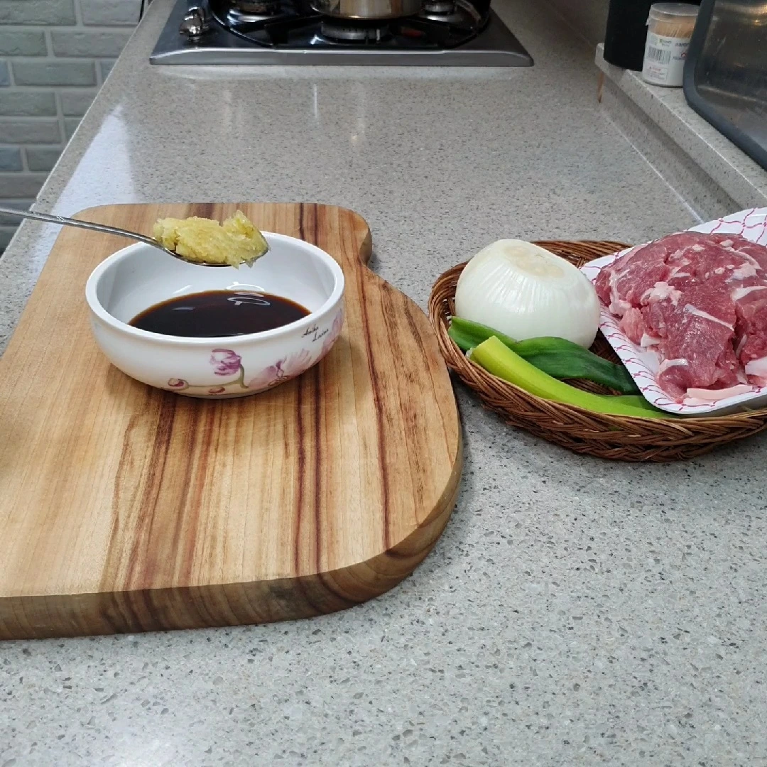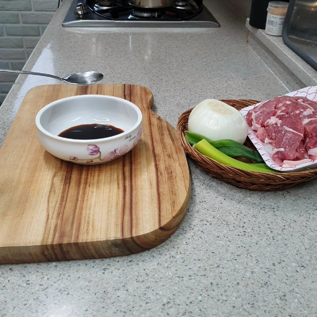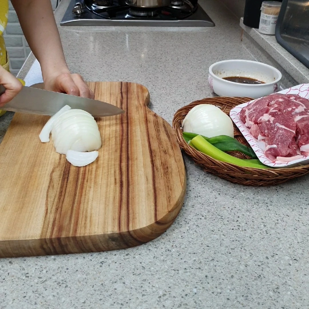 재료 : 양파 반쪽 대파 약간 돼지고기 610g