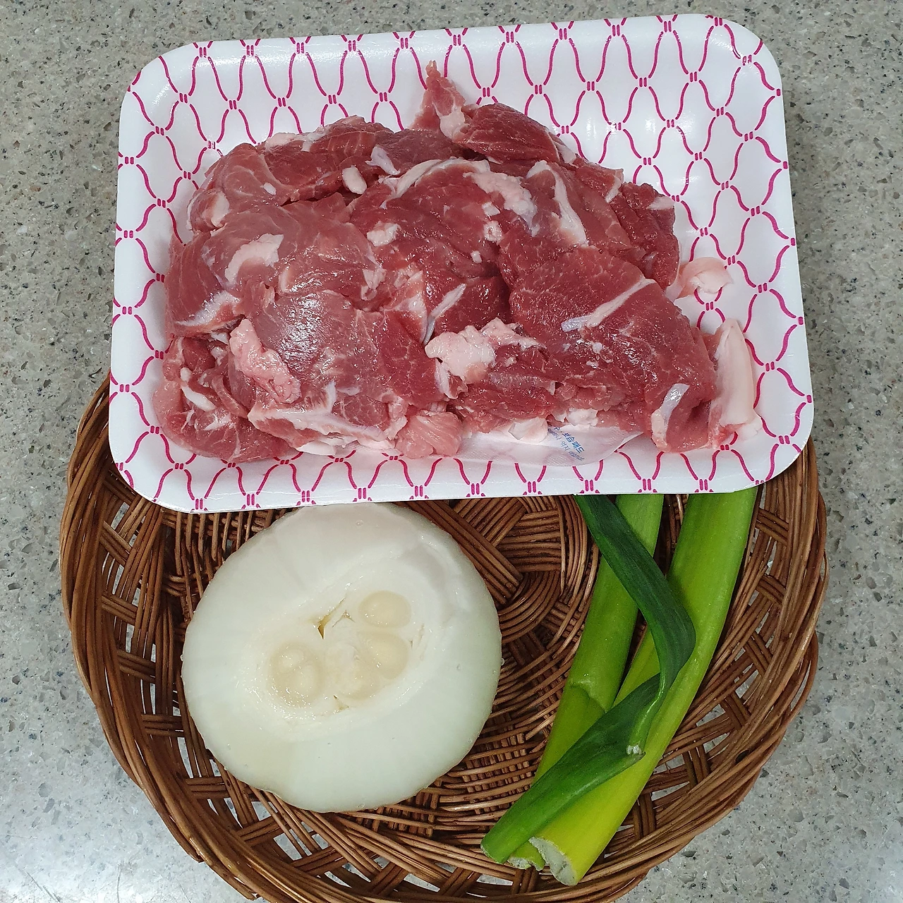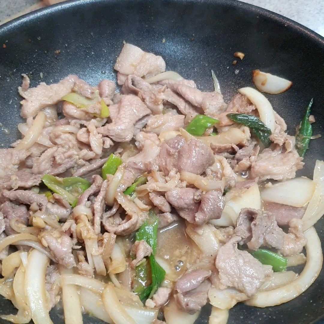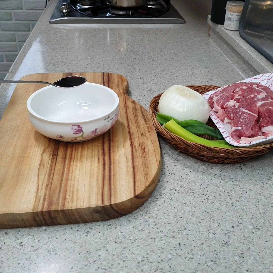 재료 : 양파 반쪽 대파 약간 돼지고기 610g
