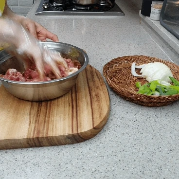 스텐볼에 고기와 양념을 묻혀주세요