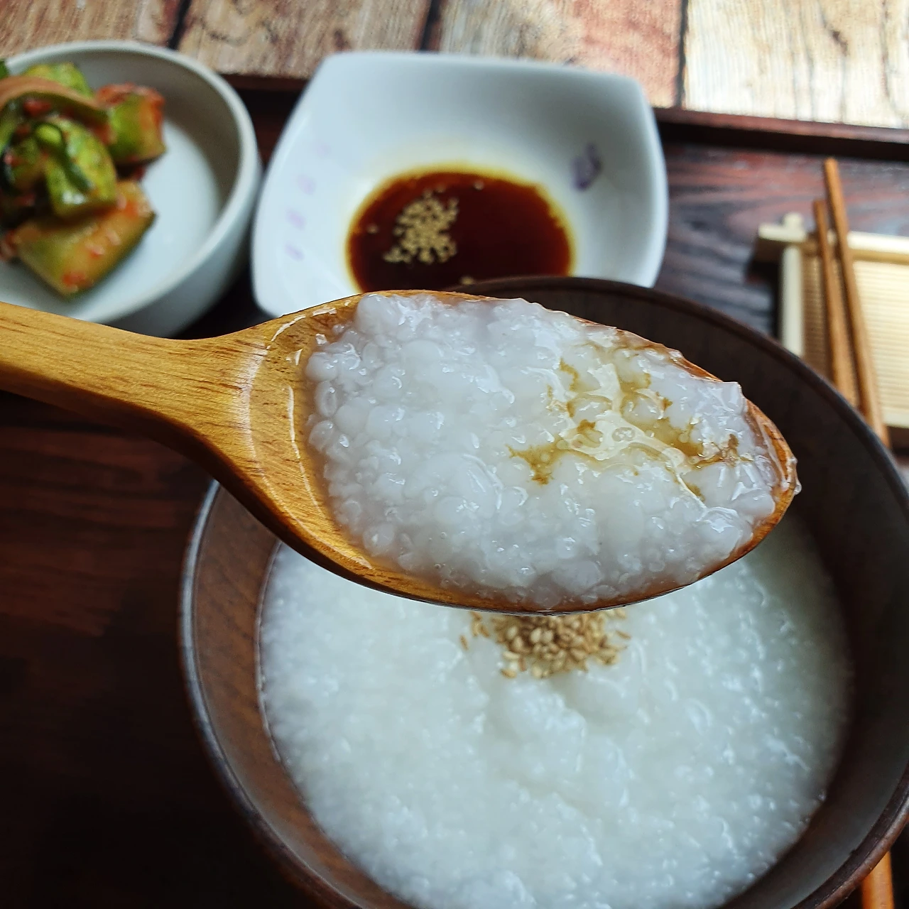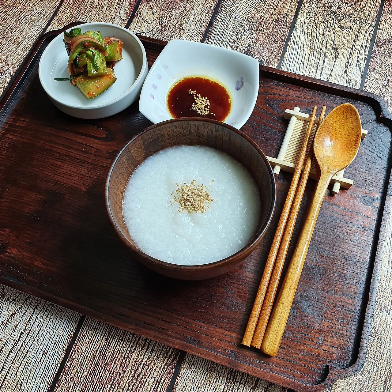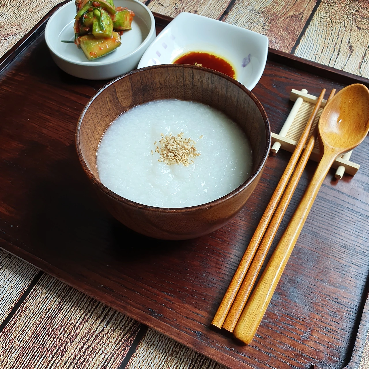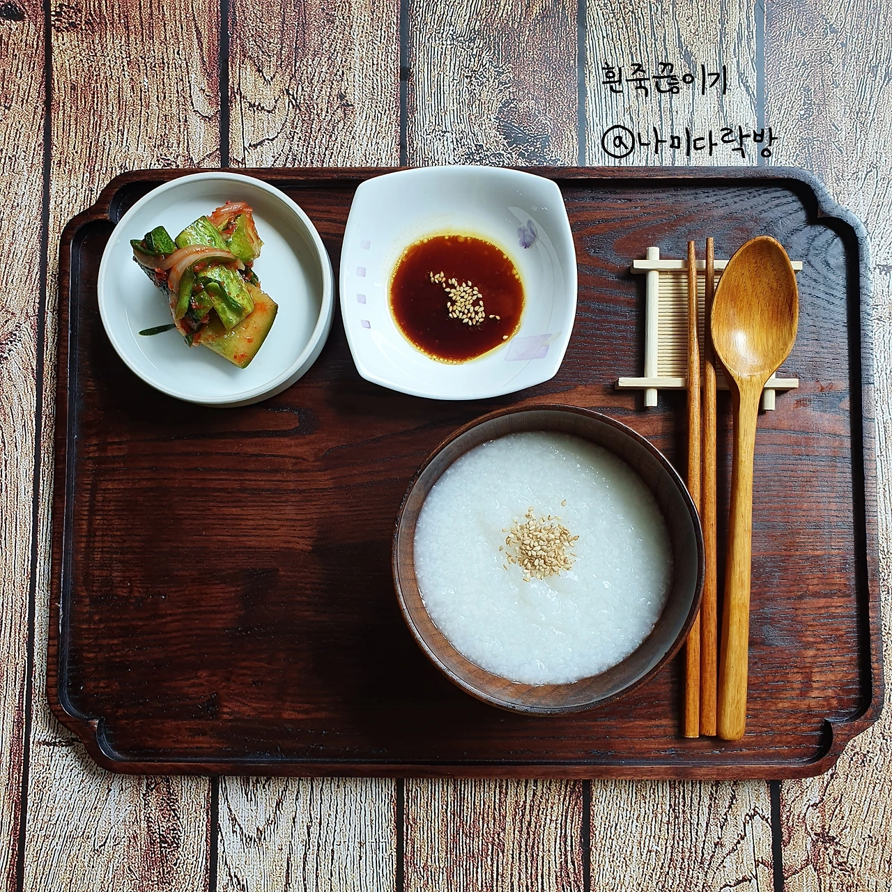 재료: 흰쌀 1컵 물 3컵 양념 재료 : 진간장 2스푼 들기름 1스푼 <어른 수저 기준입니다.>