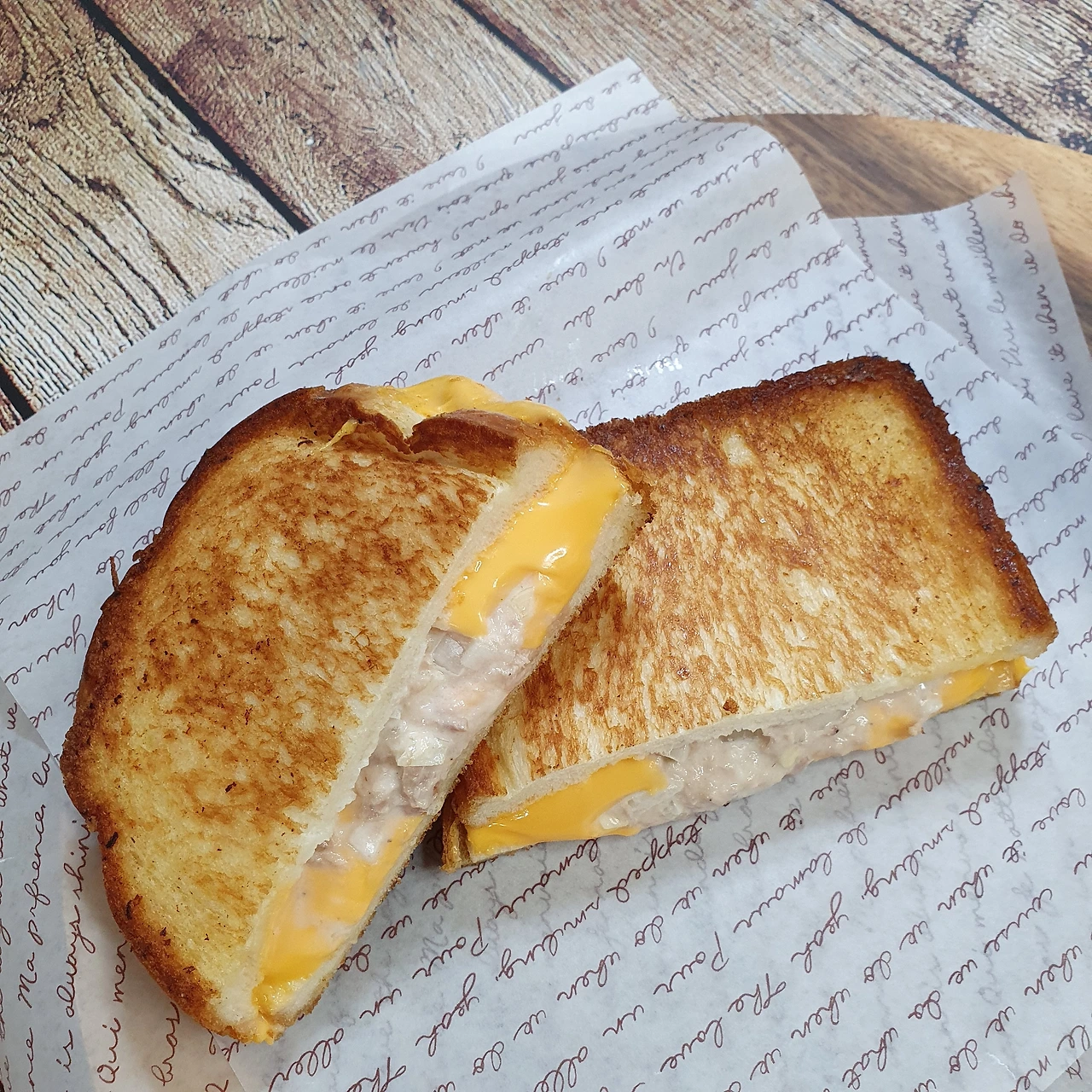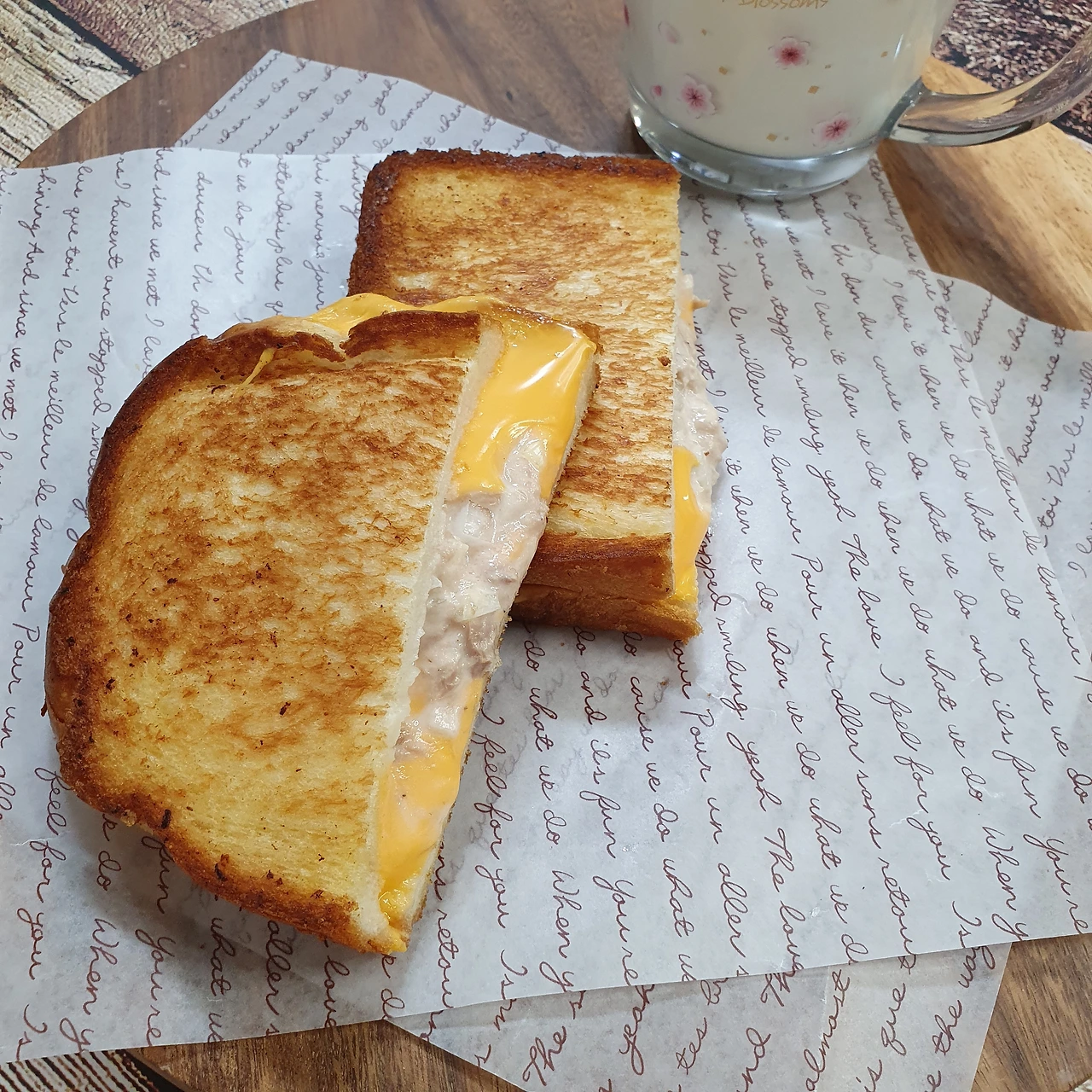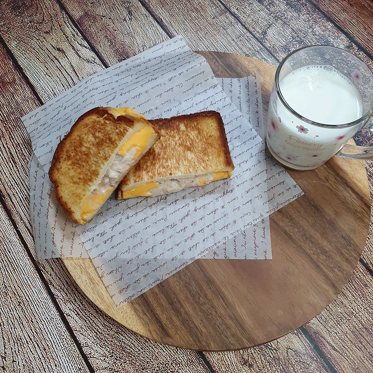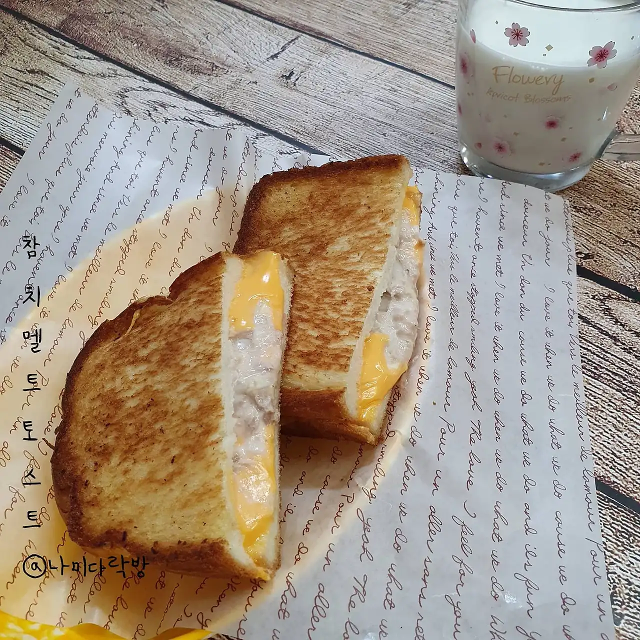 참치 멜트 토스트재료 : 참 치한 캔 치즈 3장 버터 식빵 2장 마요네즈 5스푼 양파 반쪽 후추 솔솔 맛소금 솔솔