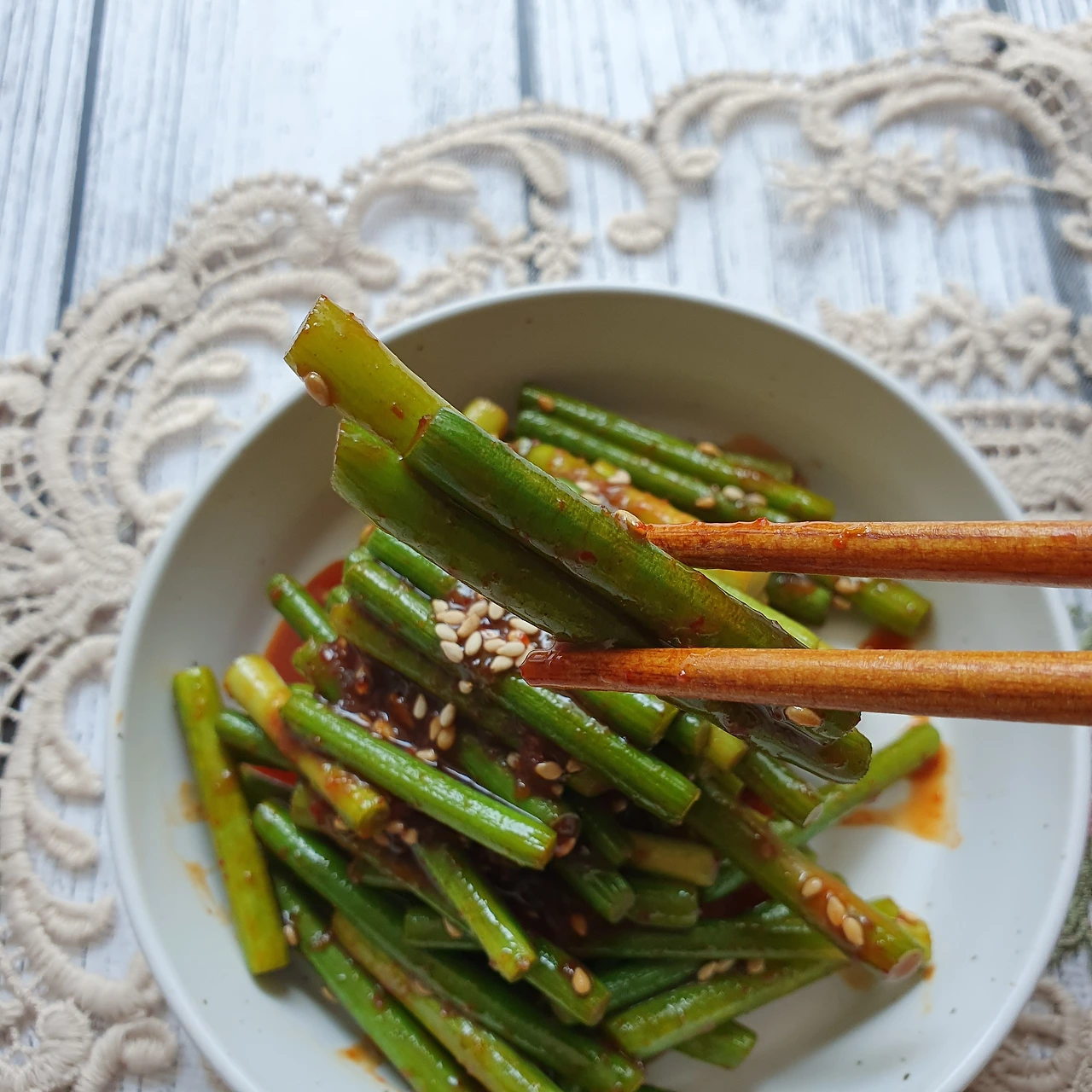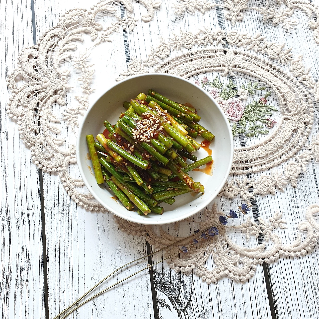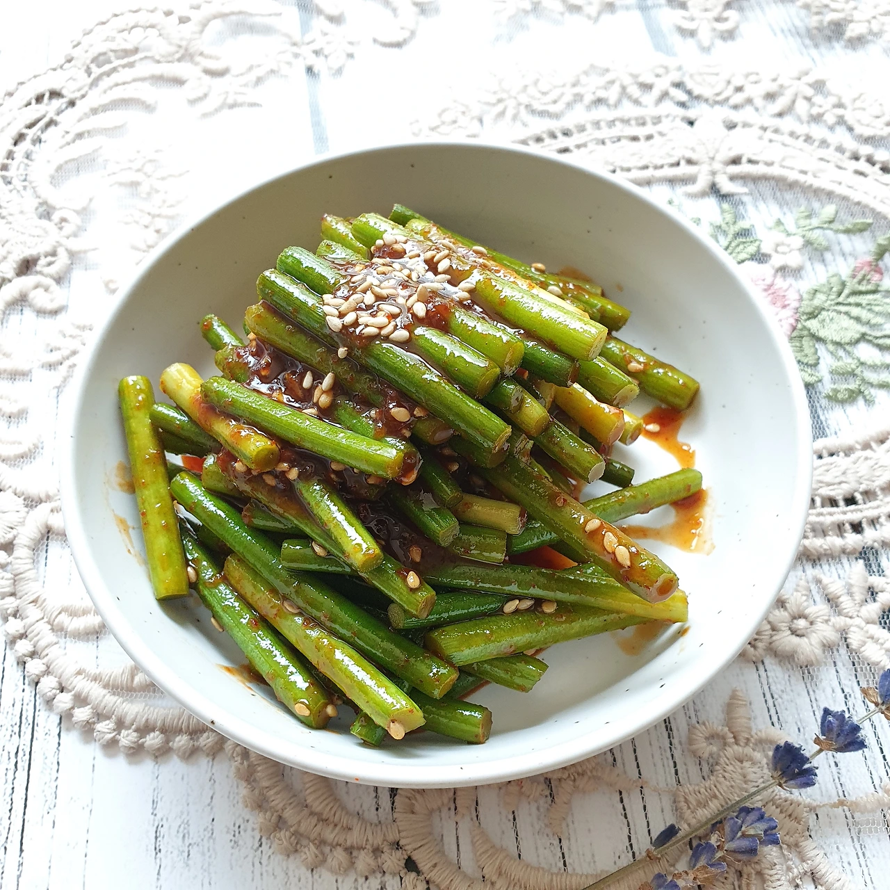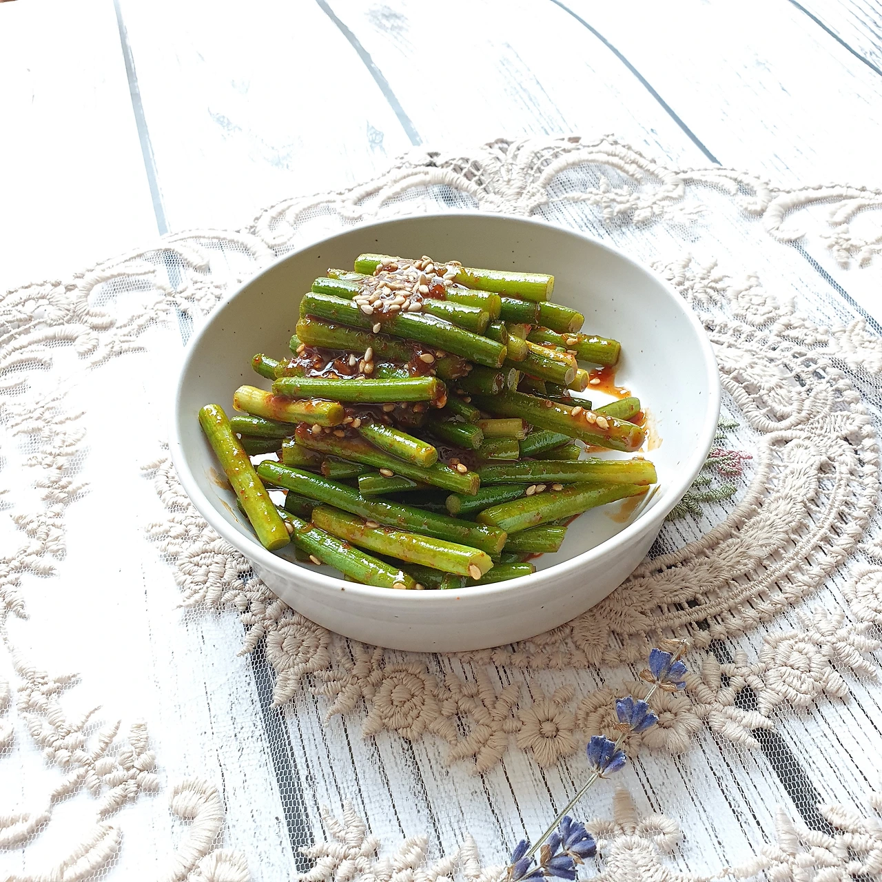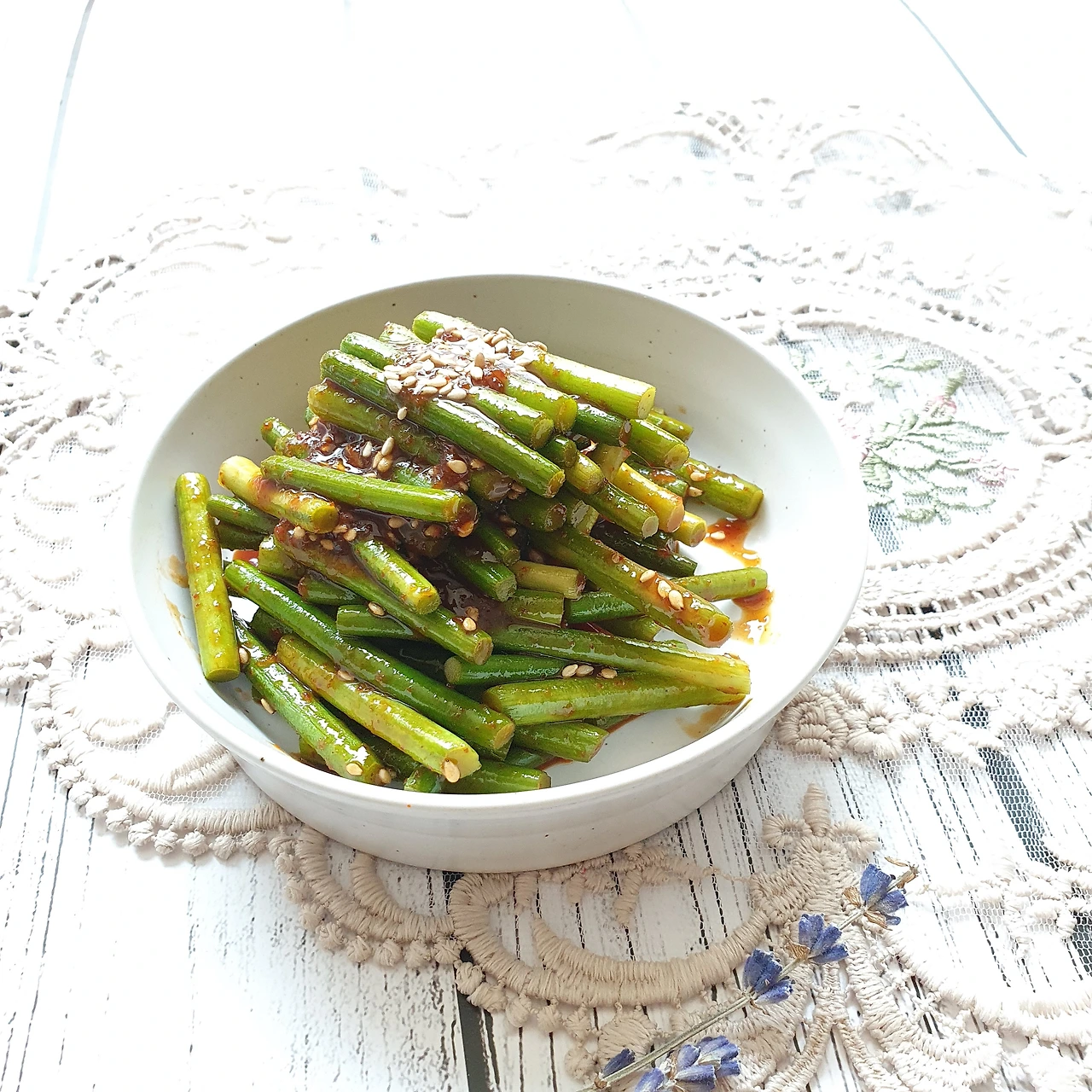 8. 양념장에 마늘쫑을 무쳐주시면 완성입니다.