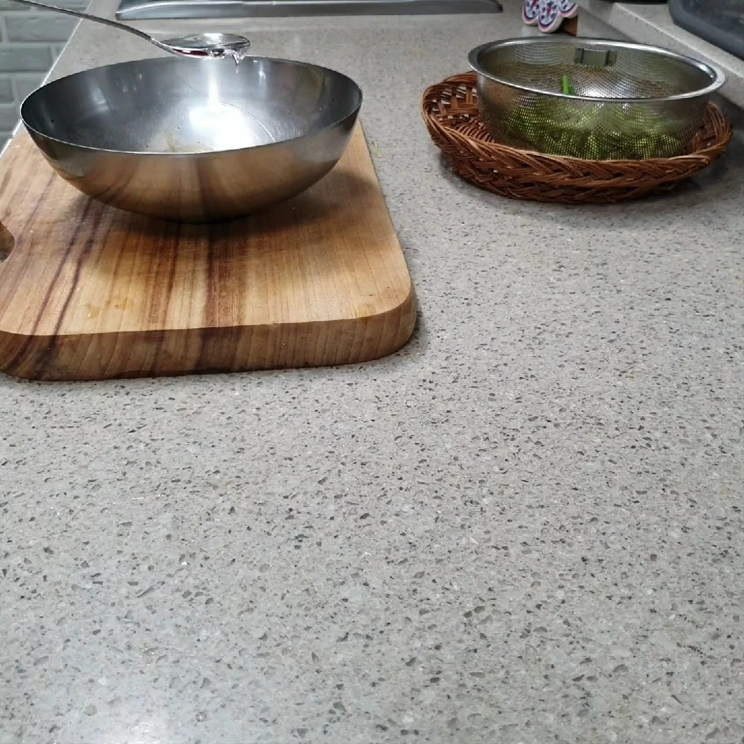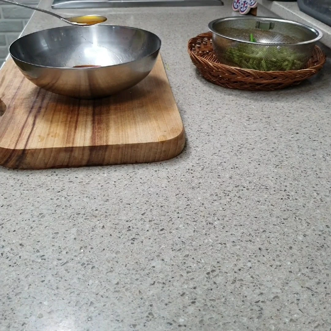 6. 그리고 스텐 망 바구니에 마늘쫑을 건져주세요