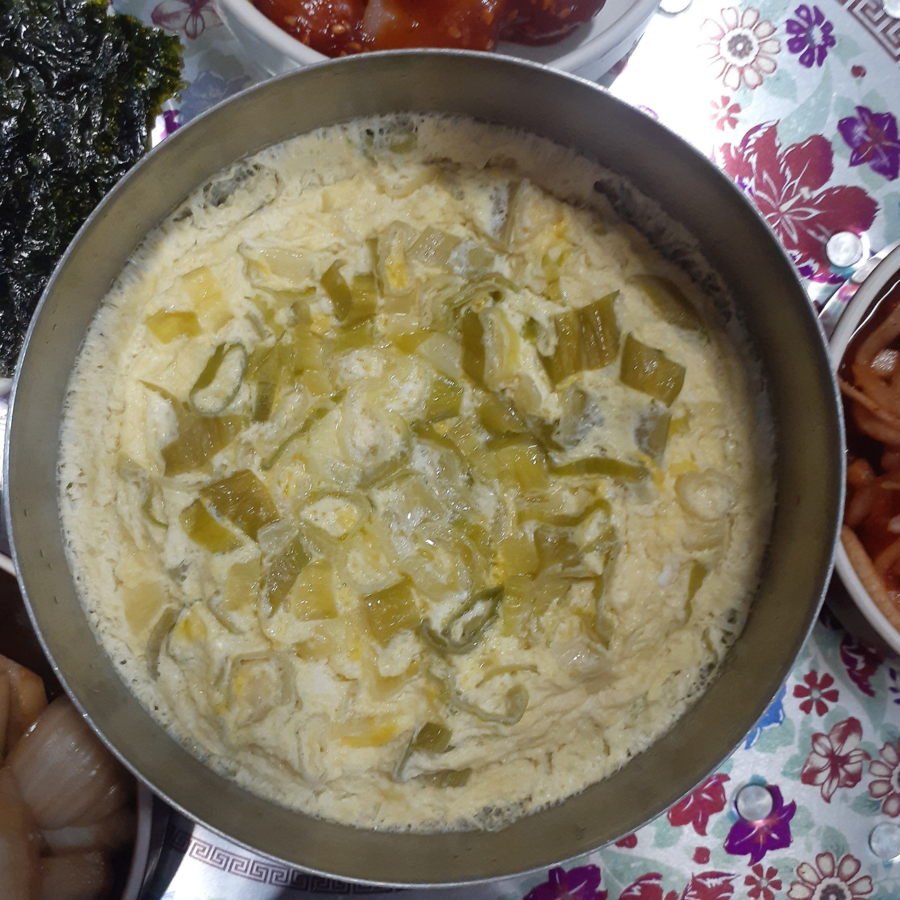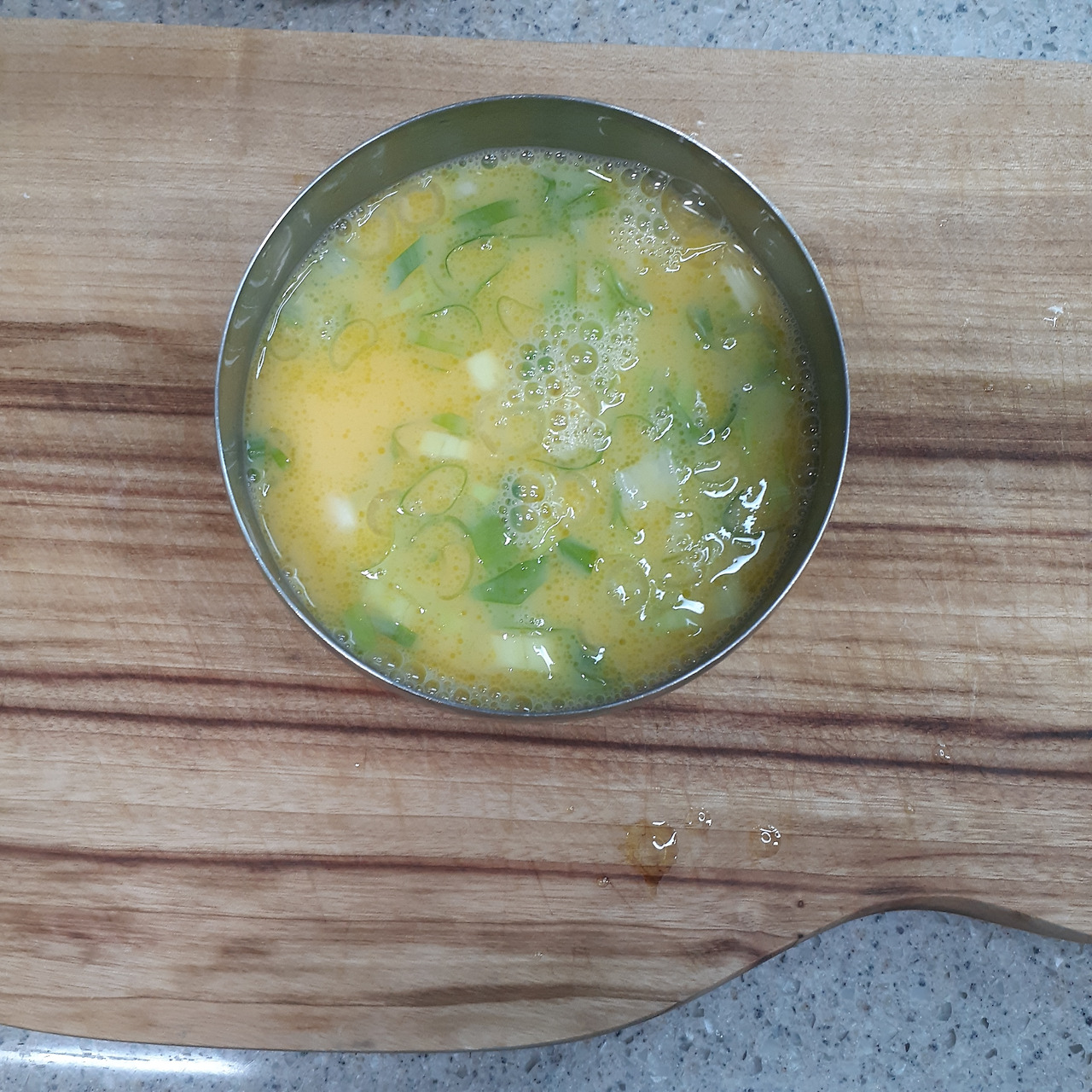 재료 준비해주세요 계란 3알 대파 약간 맛소금 조금 들기름 1스푼 물 1컵<어른 수저 종이컵 기준입니다.>