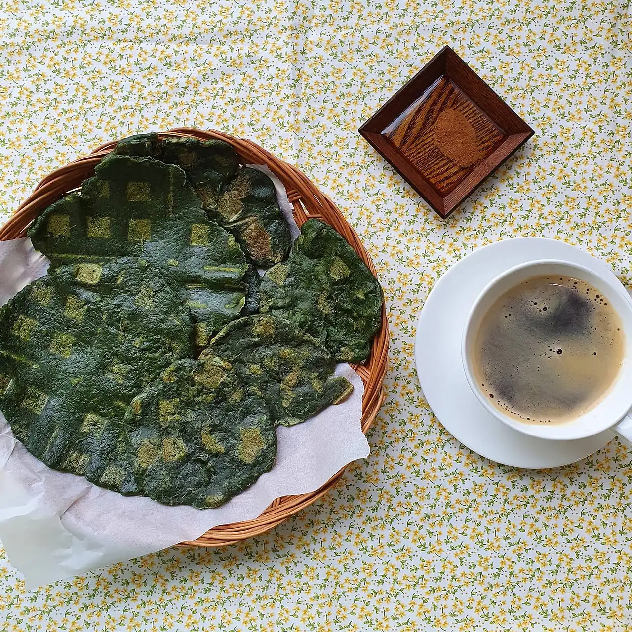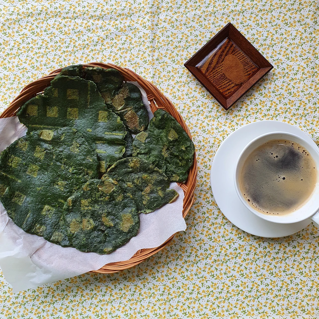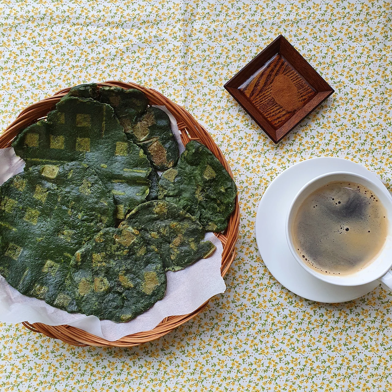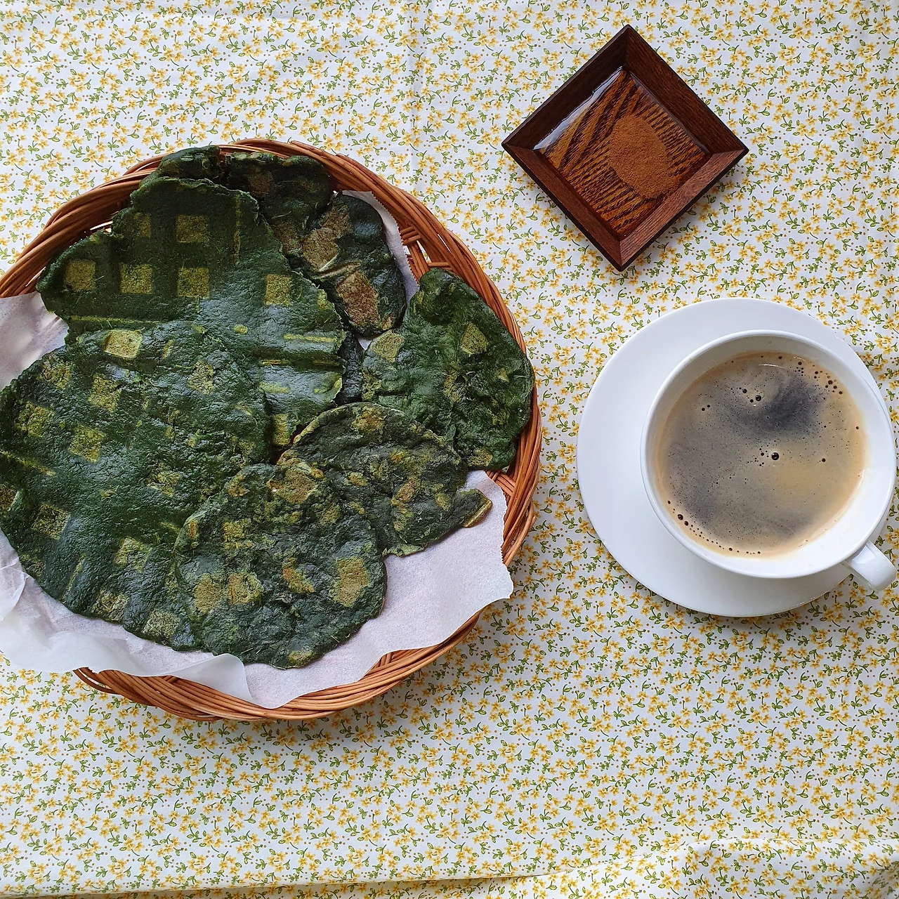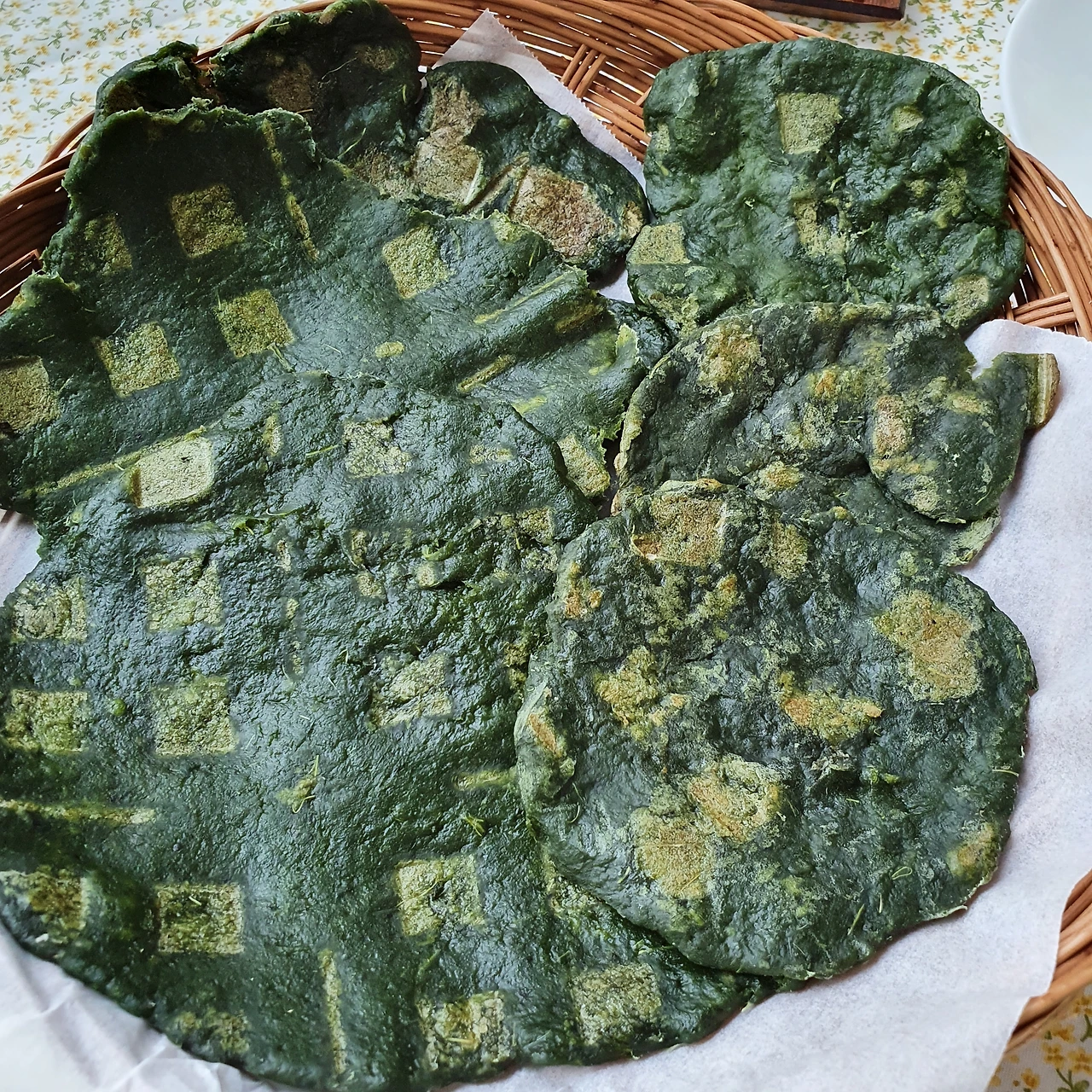 재료 준비해주세요 재료 : 와플메이커 쑥 덩어리 들기름