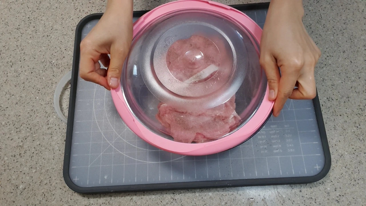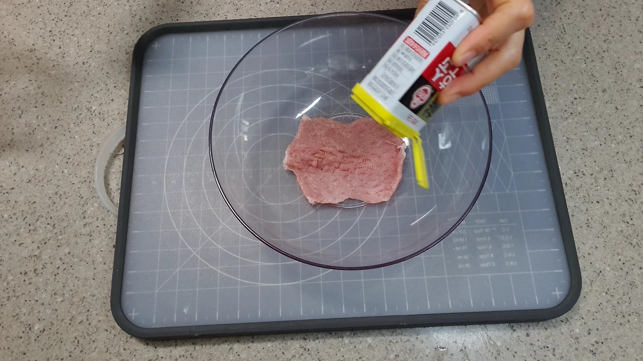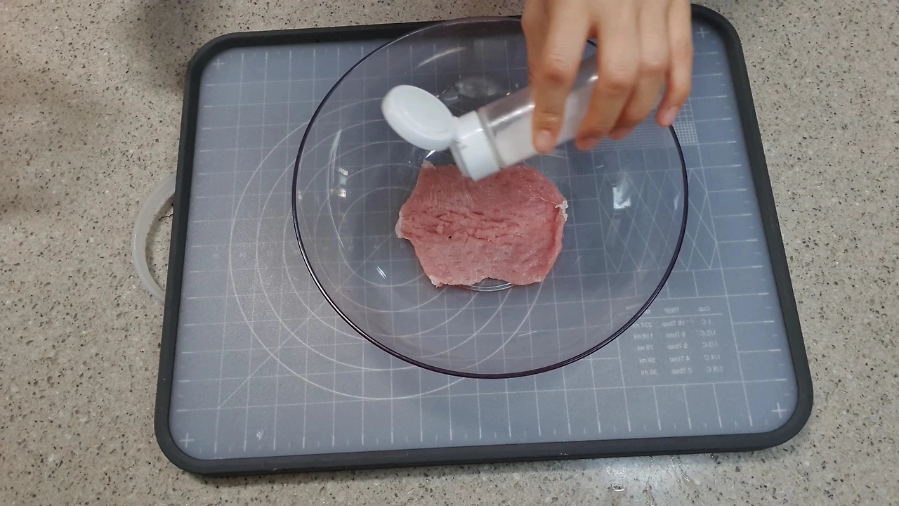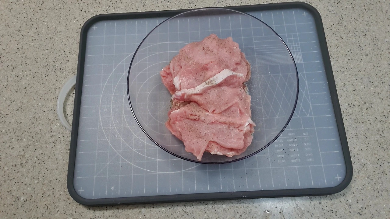 재료 준비해주세요 재료 : 돼지고기돈가스용 맛소금 후추 빵가루 계란 튀김가루