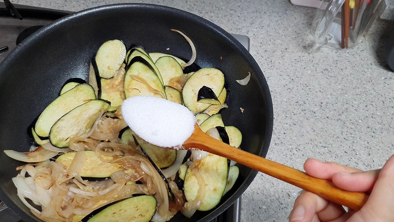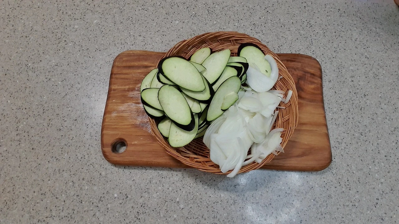 재료 준비해주세요 재료 : 가지 2개 양파 반쪽양념재료 : 식용유 2스푼 마늘 1스푼 진간장 2스푼 설탕 1스푼 굴소스 1스푼 들기름 2스푼 깨 1스푼<어른 수저 기준입니다. >