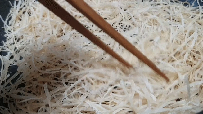이때!! 젓가락으로 저어주면서 오징어 실채를 볶아주세요