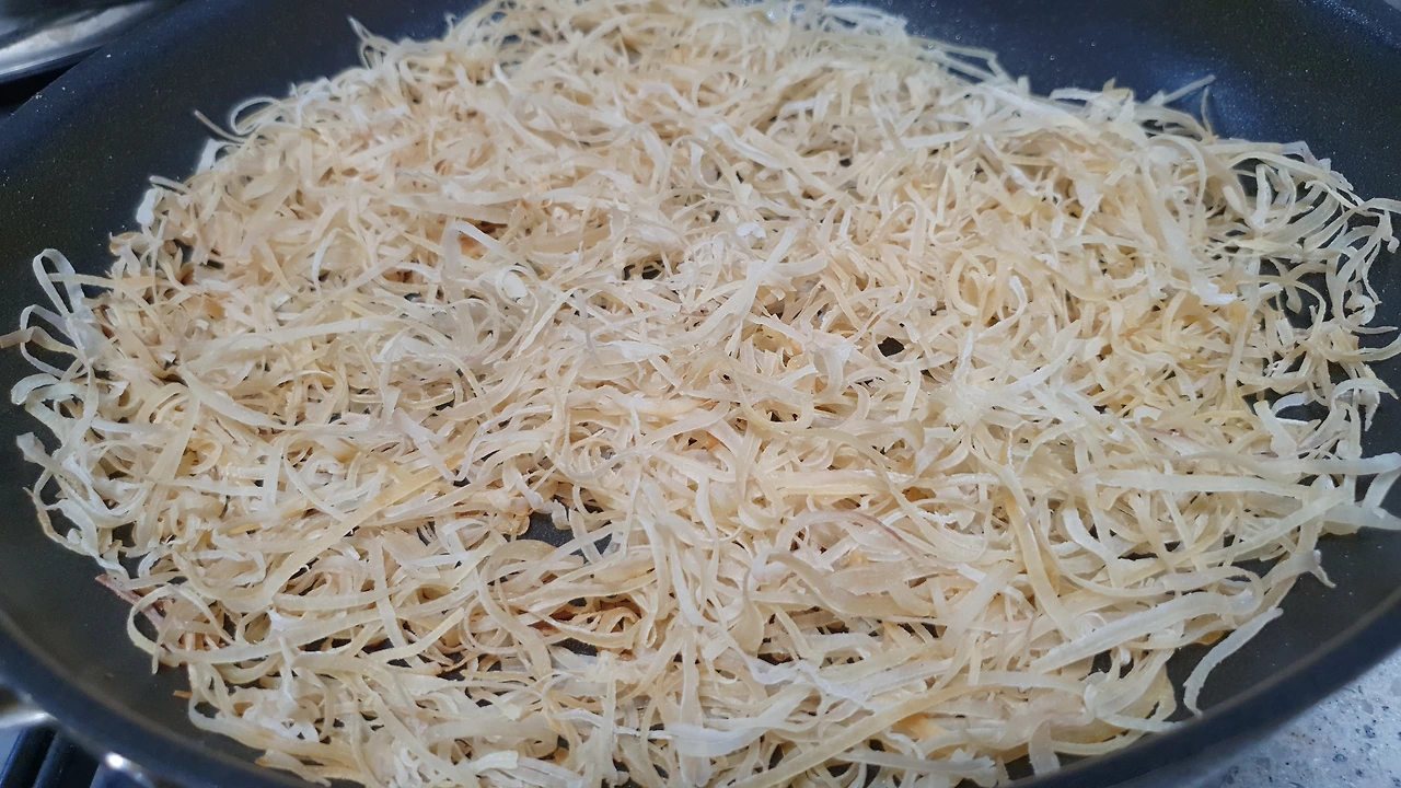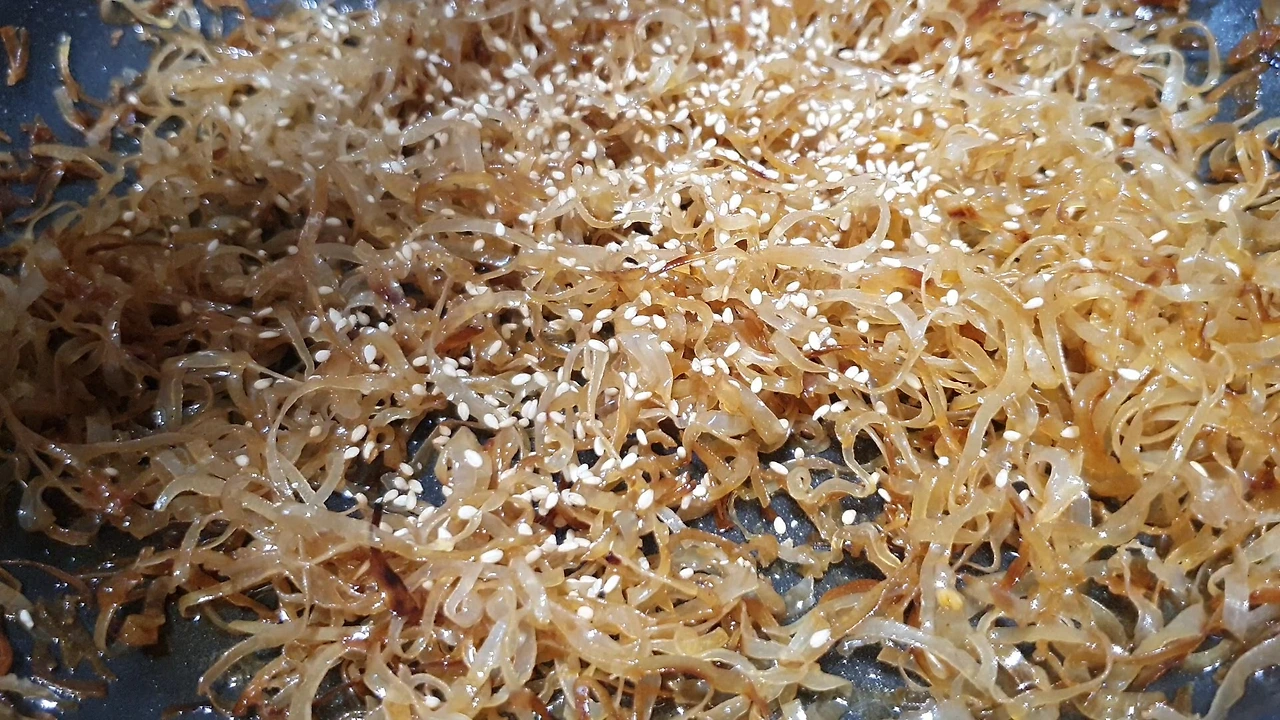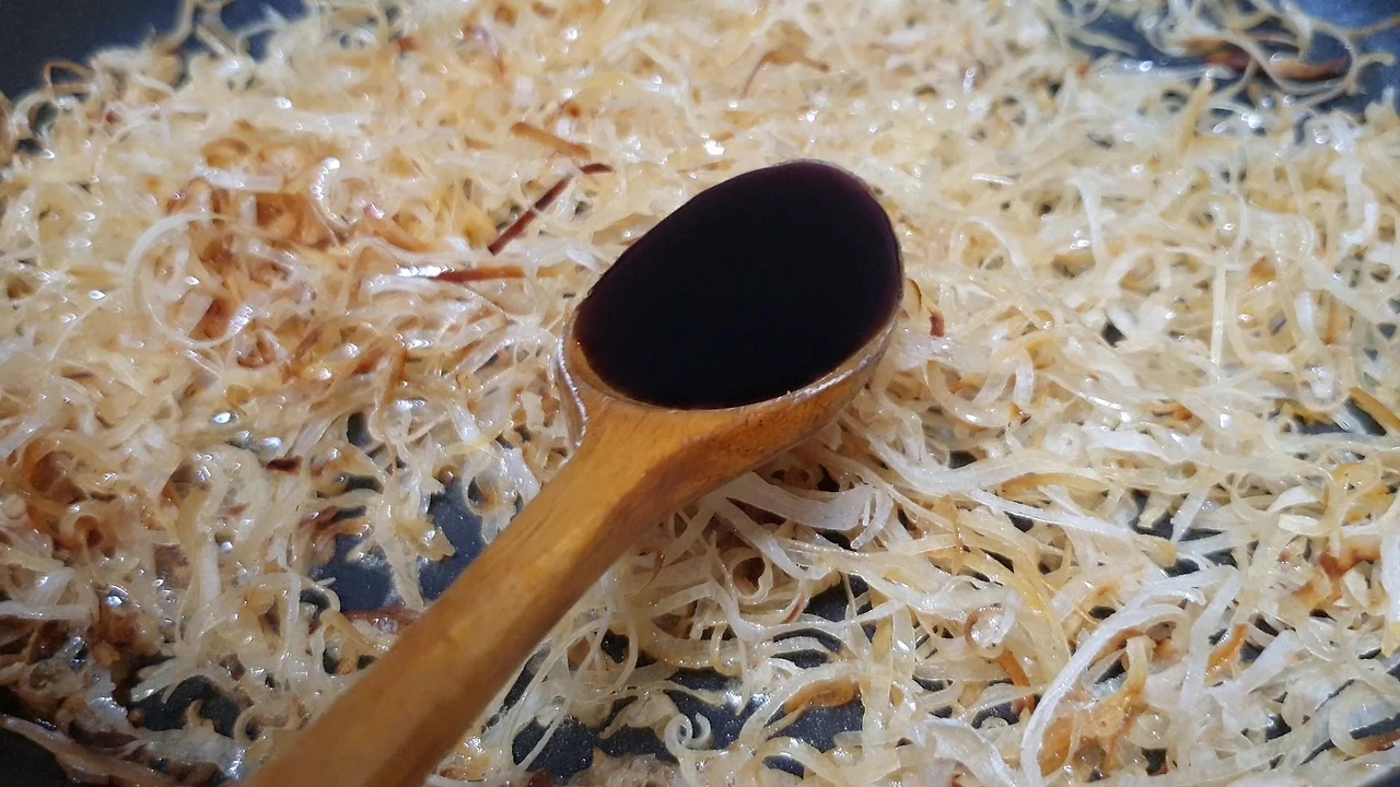프라이팬에 오징어 실채나 건어물 볶음을 만들 때