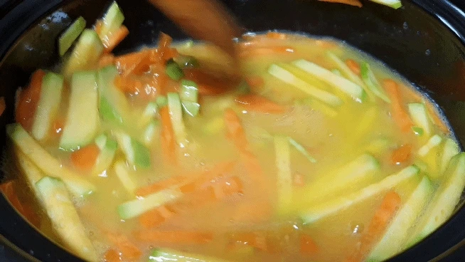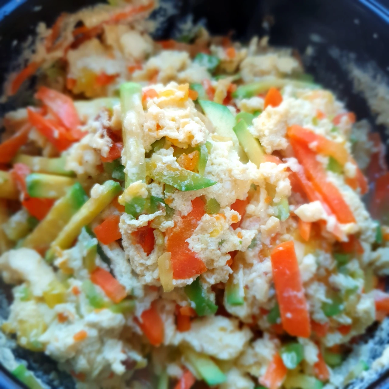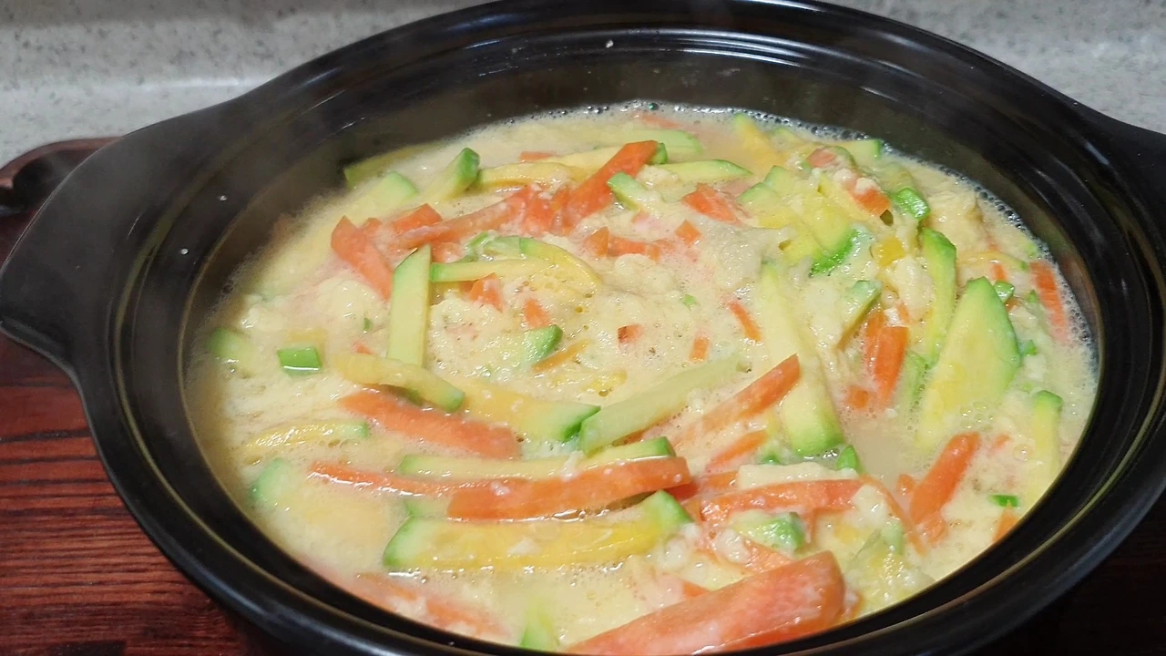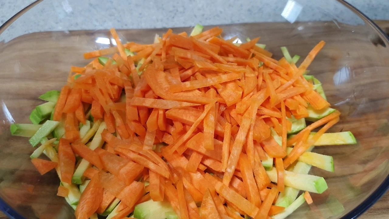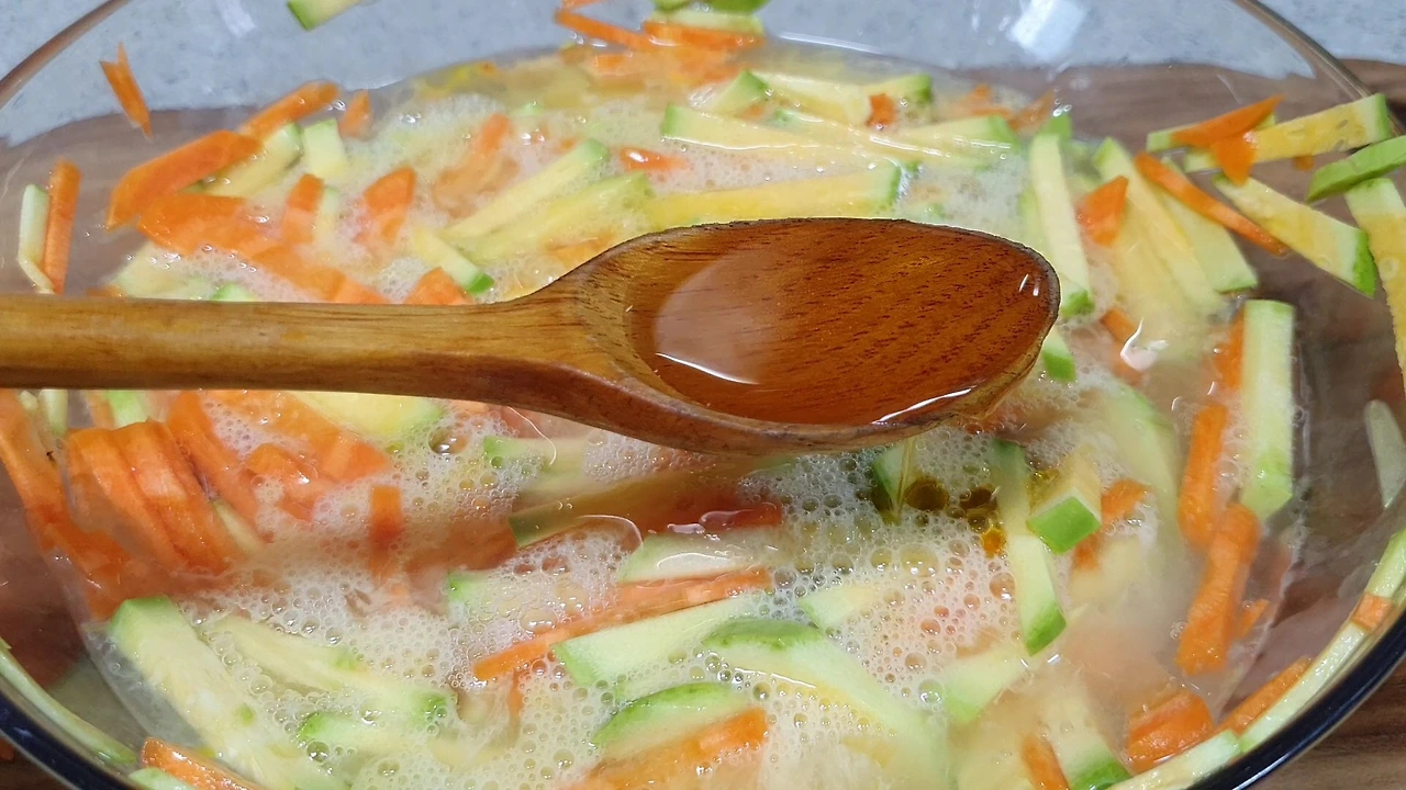 재료 : 계란 5알 호박 당근양념재료 : 물 1컵 맛소금 1스푼들기름 2스푼 식소다 약간