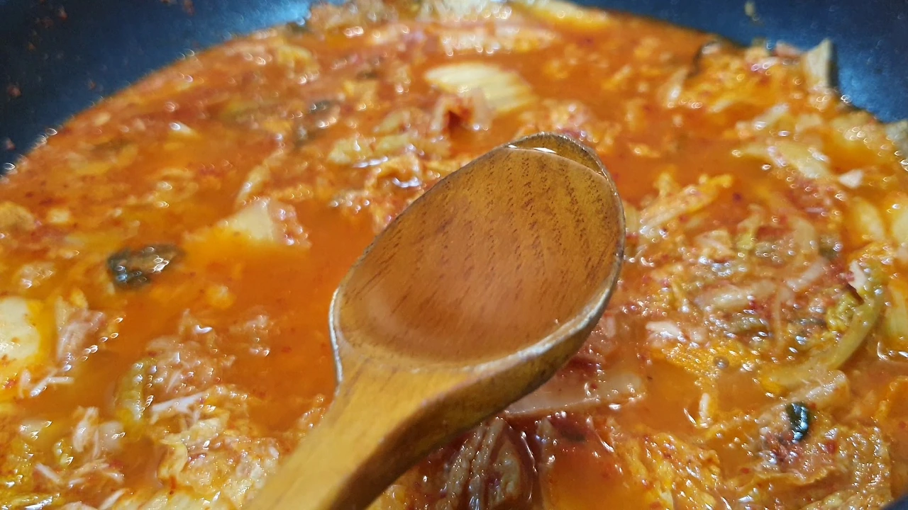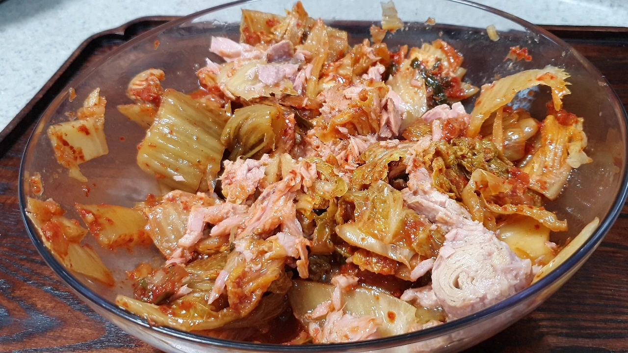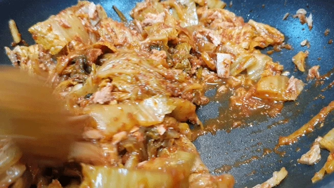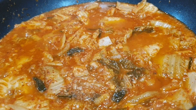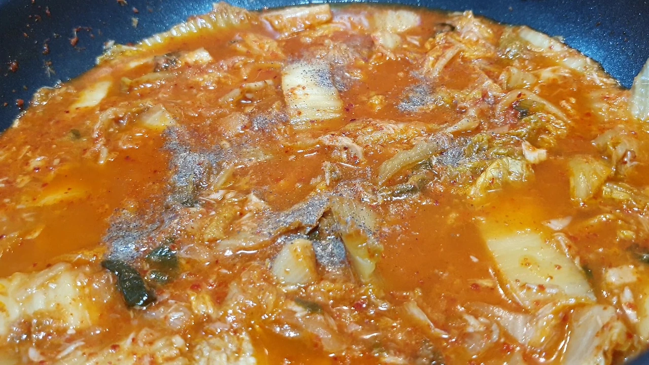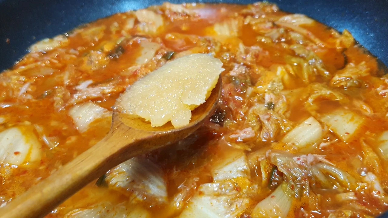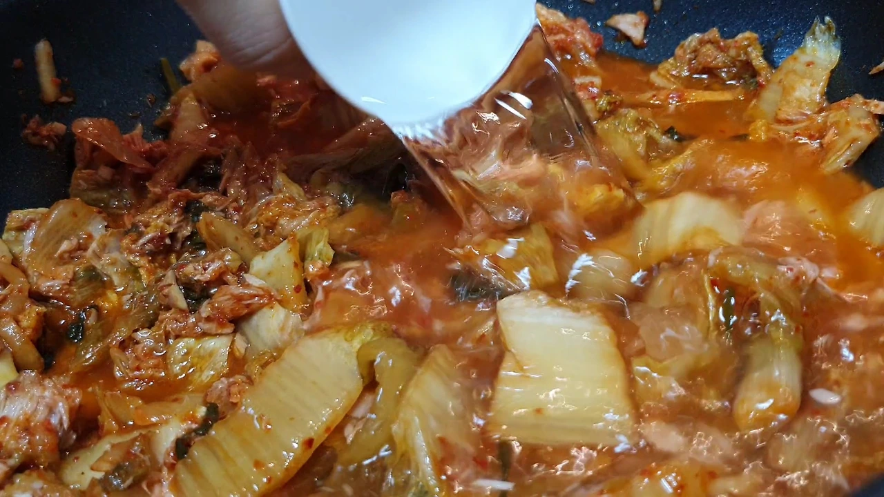 재료 : 김치 참치 한 캔양념재료 : 설탕 1스푼 마늘 1스푼 고춧가루 1스푼 물 2컵 반 대파 듬뿍 참치 액 2스푼