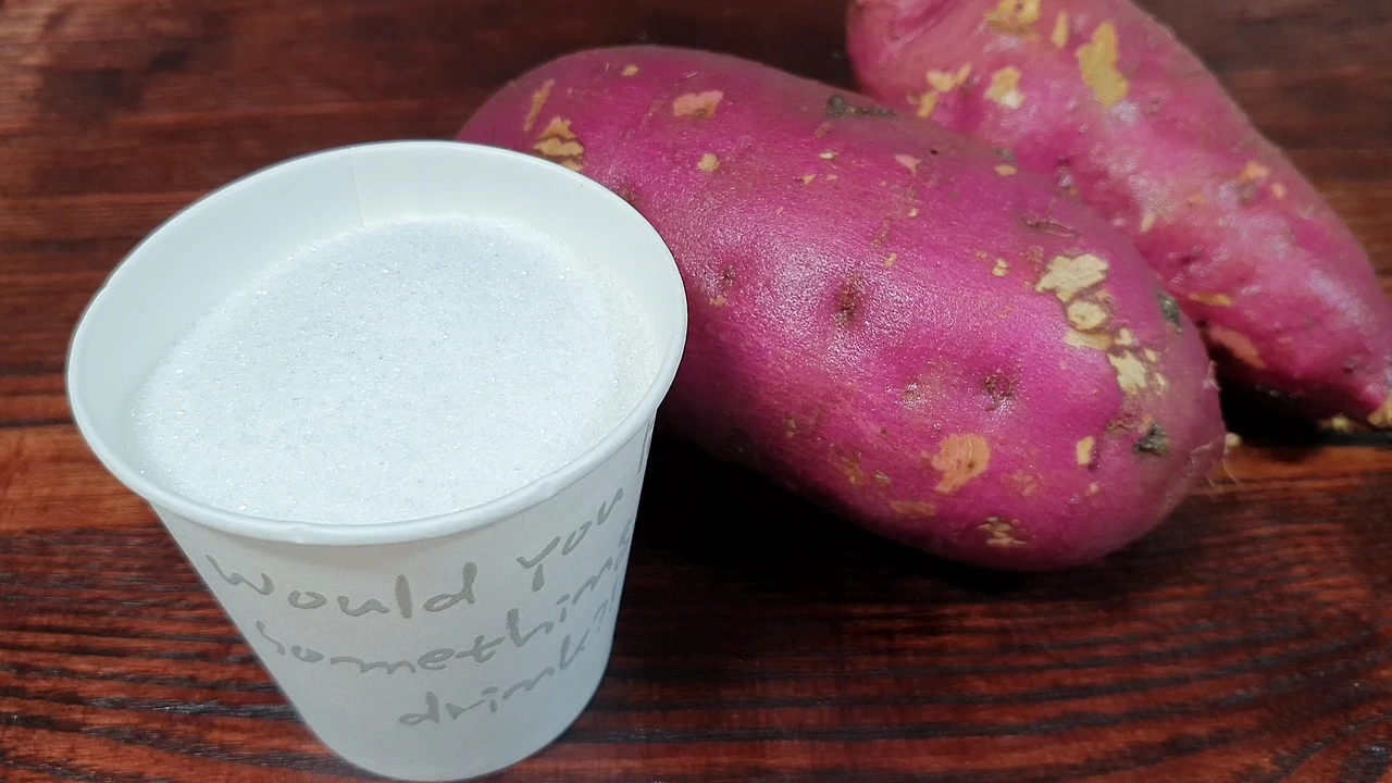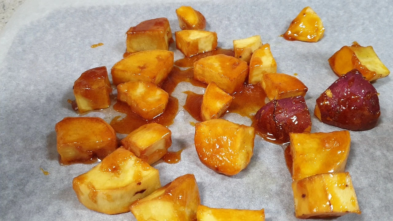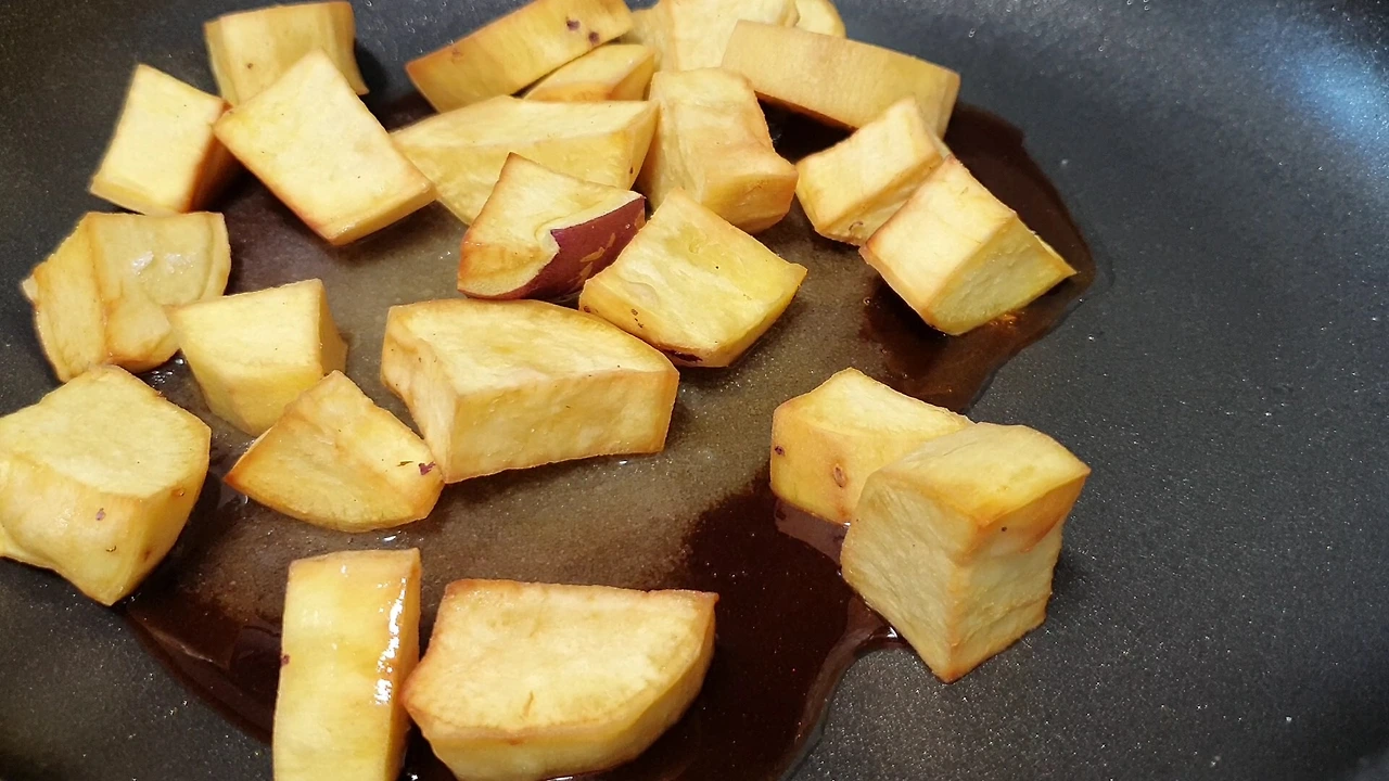 약불로 하여서 고구마를 설탕시럽에 묻혀주세요