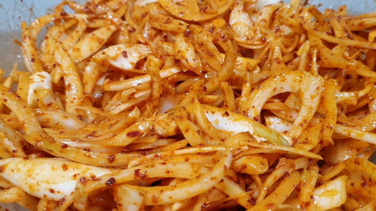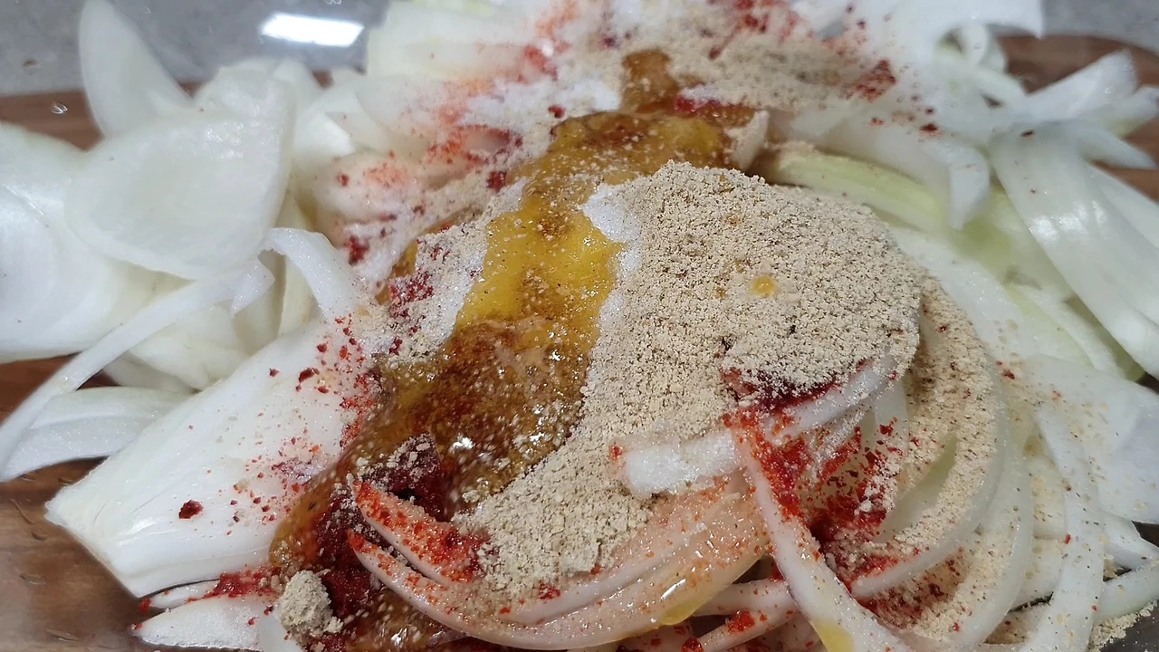 양파 초무침 양념장 고춧가루 2스푼 식초 4스푼 설탕 2스푼 들깻가루 1스푼 들기름 2스푼