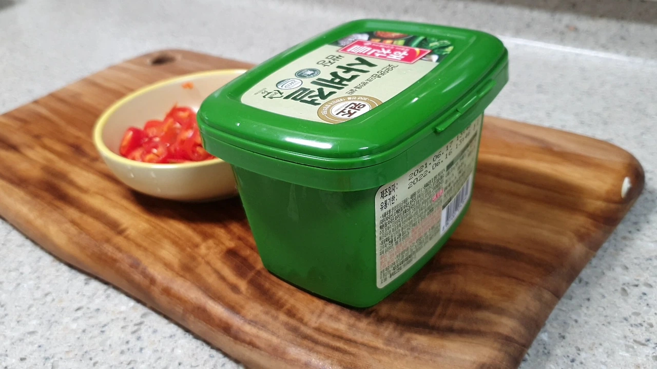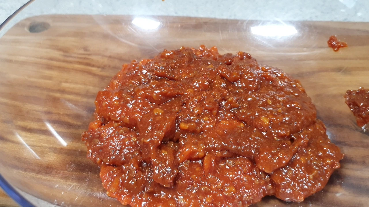 재료 : 쌈장 고추 2개 양념재료 : 들기름 3스푼 고춧가루 1스푼 다진 마늘 1스푼 <생마늘을 다져주는 것을 추천합니다.>