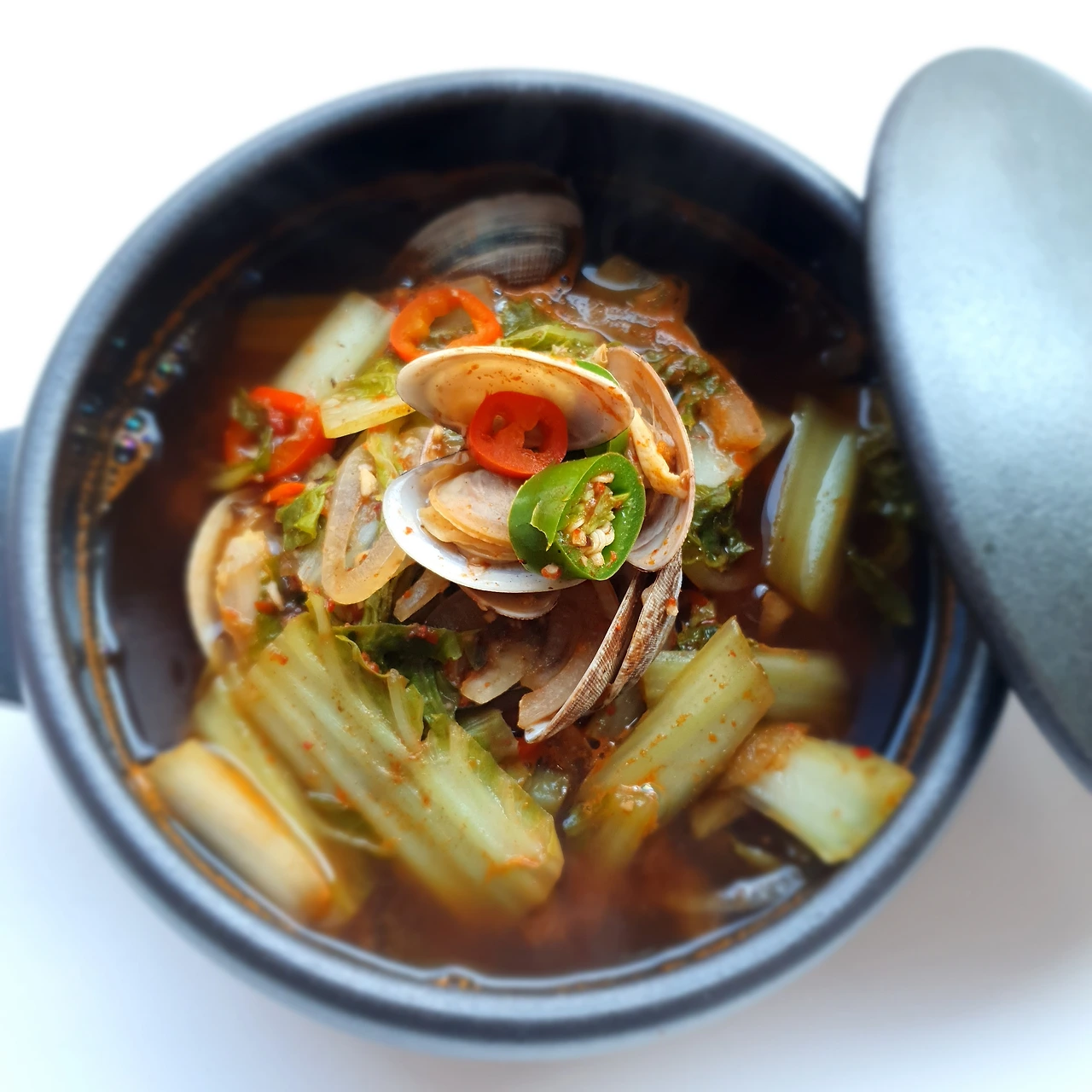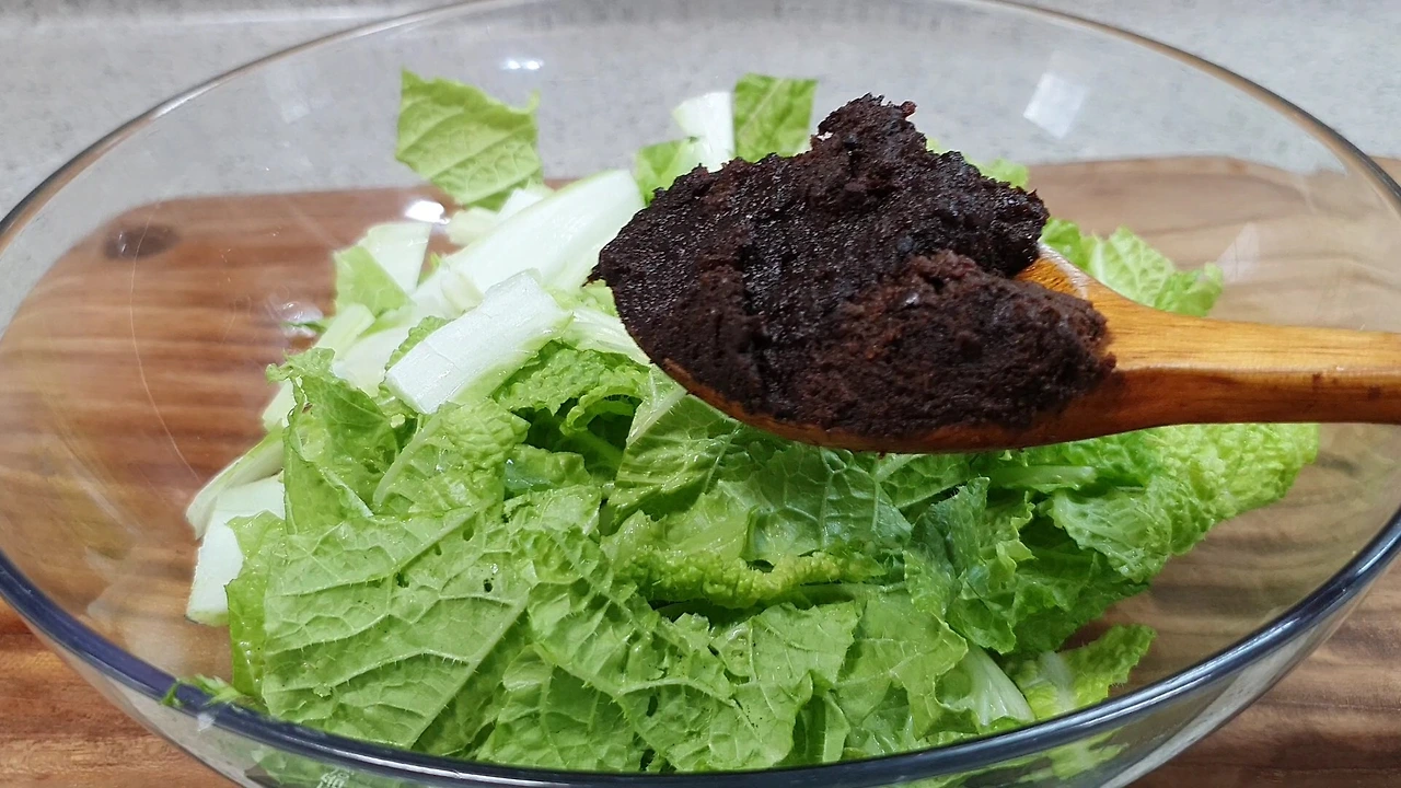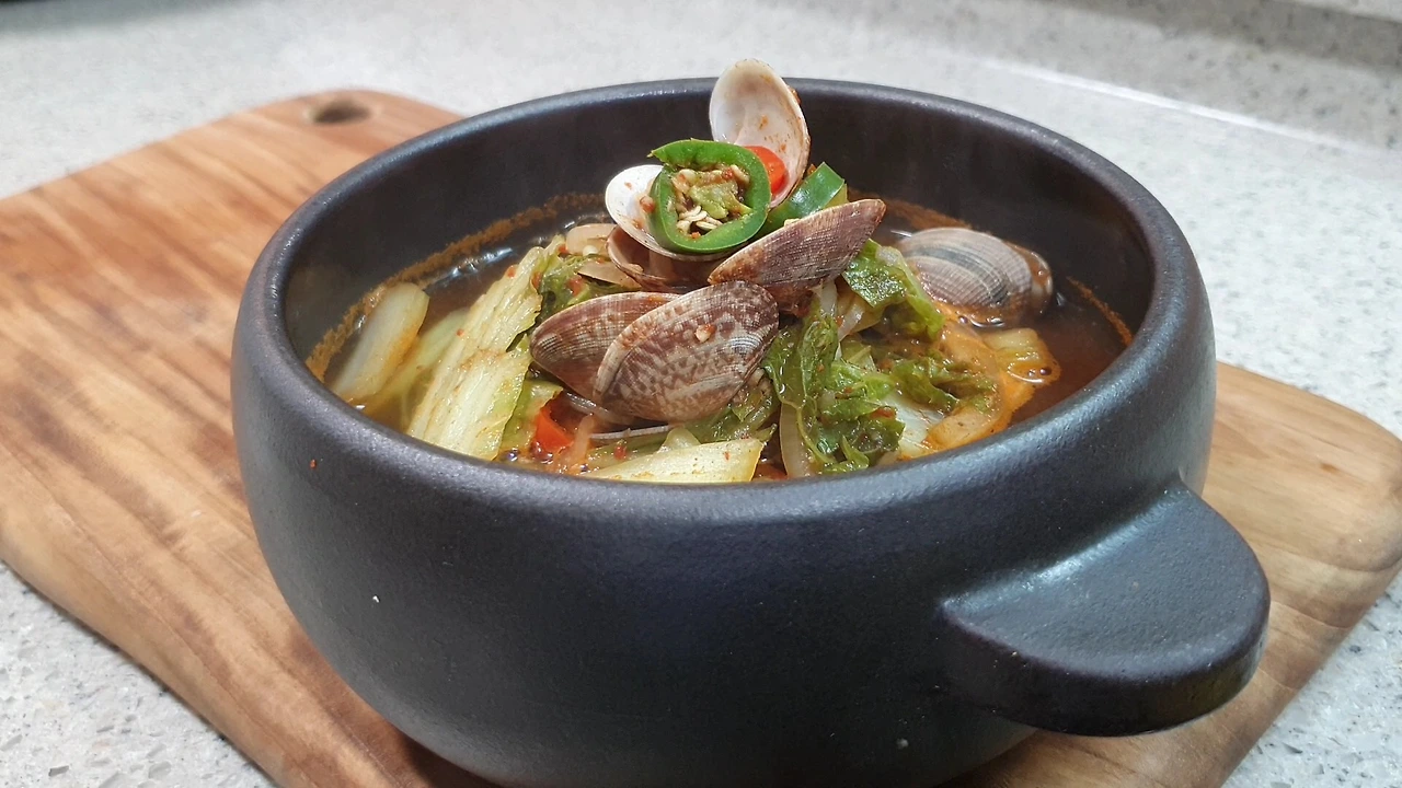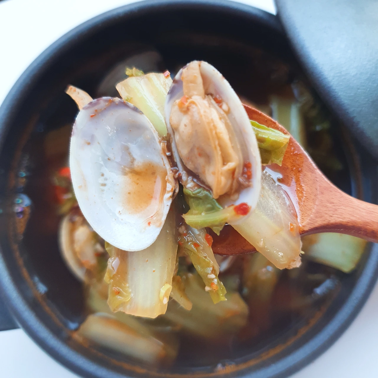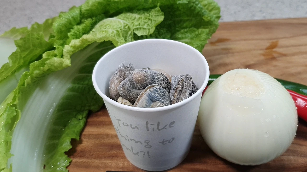 -재료 - 배추 5장 조개 1컵 고추 2개 양파 반쪽양념재료 : 된장 1스푼 마늘 1스푼 양념할 때 물 4스푼 고춧가루 1스푼 물