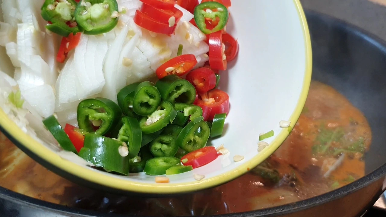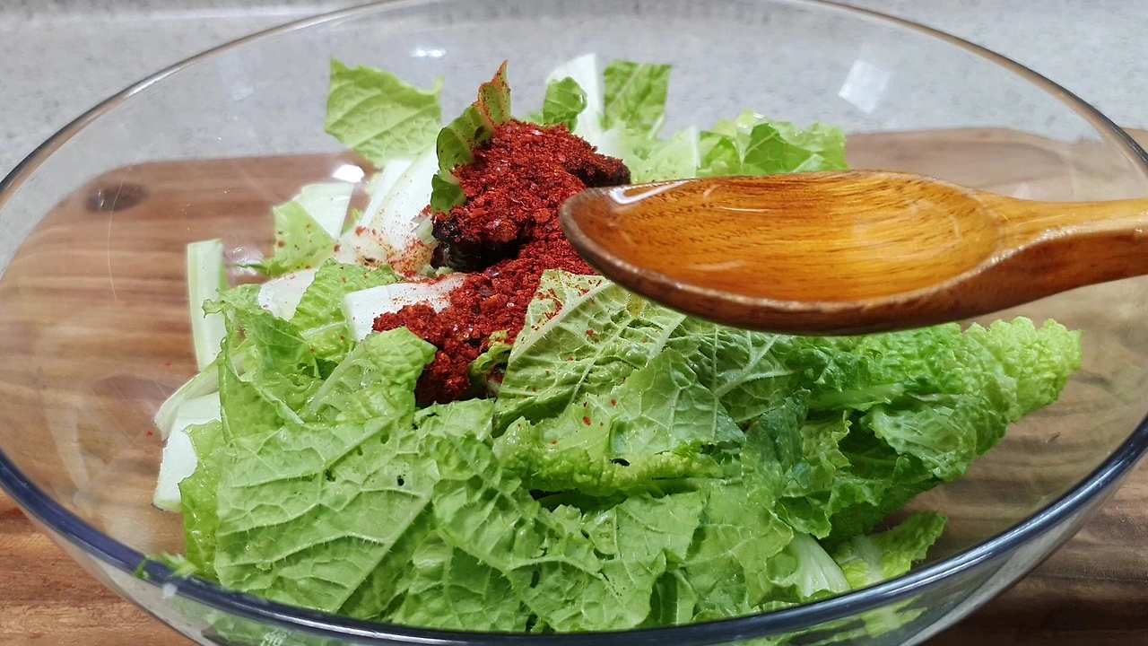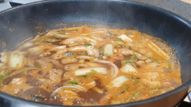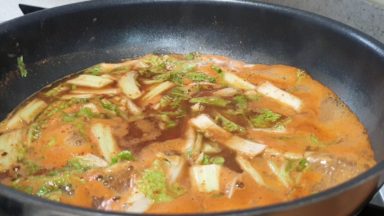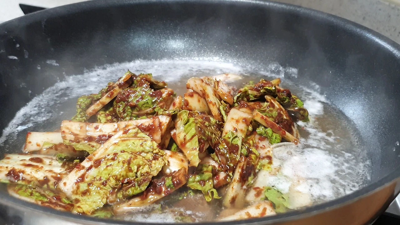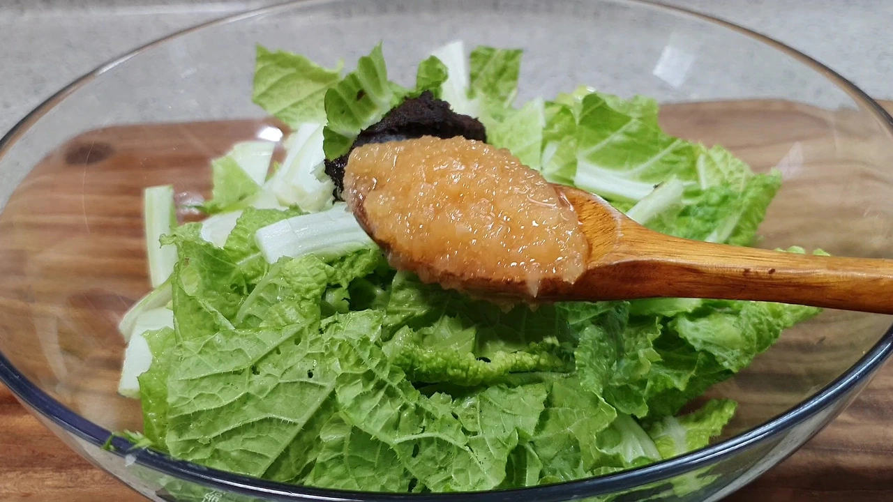 -재료 - 배추 5장 조개 1컵 고추 2개 양파 반쪽양념재료 : 된장 1스푼 마늘 1스푼 양념할 때 물 4스푼 고춧가루 1스푼 물