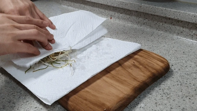 재료 : 달래 키친타월양념재료 : 달래 된장 1스푼 고춧가루 1스푼 마늘 1스푼 들기름 2스푼 들깻가루 1스푼<어른 수저 기준입니다>