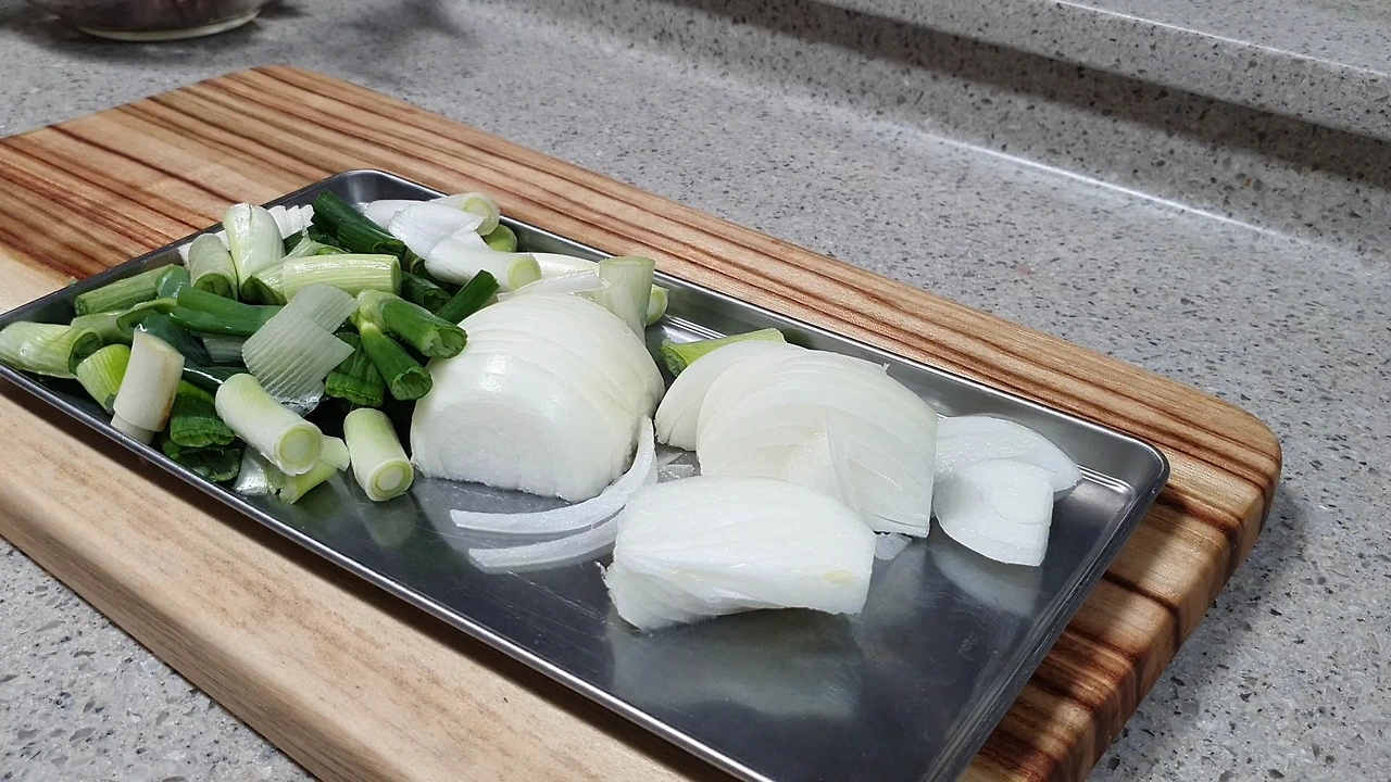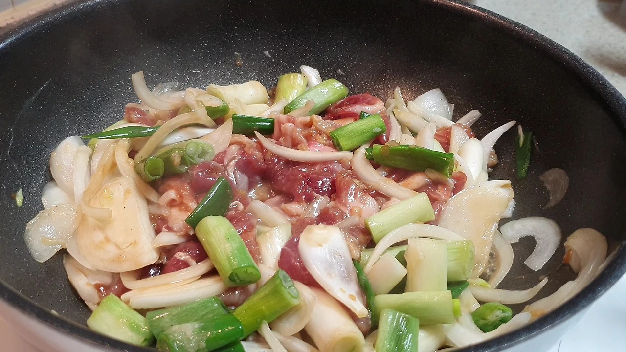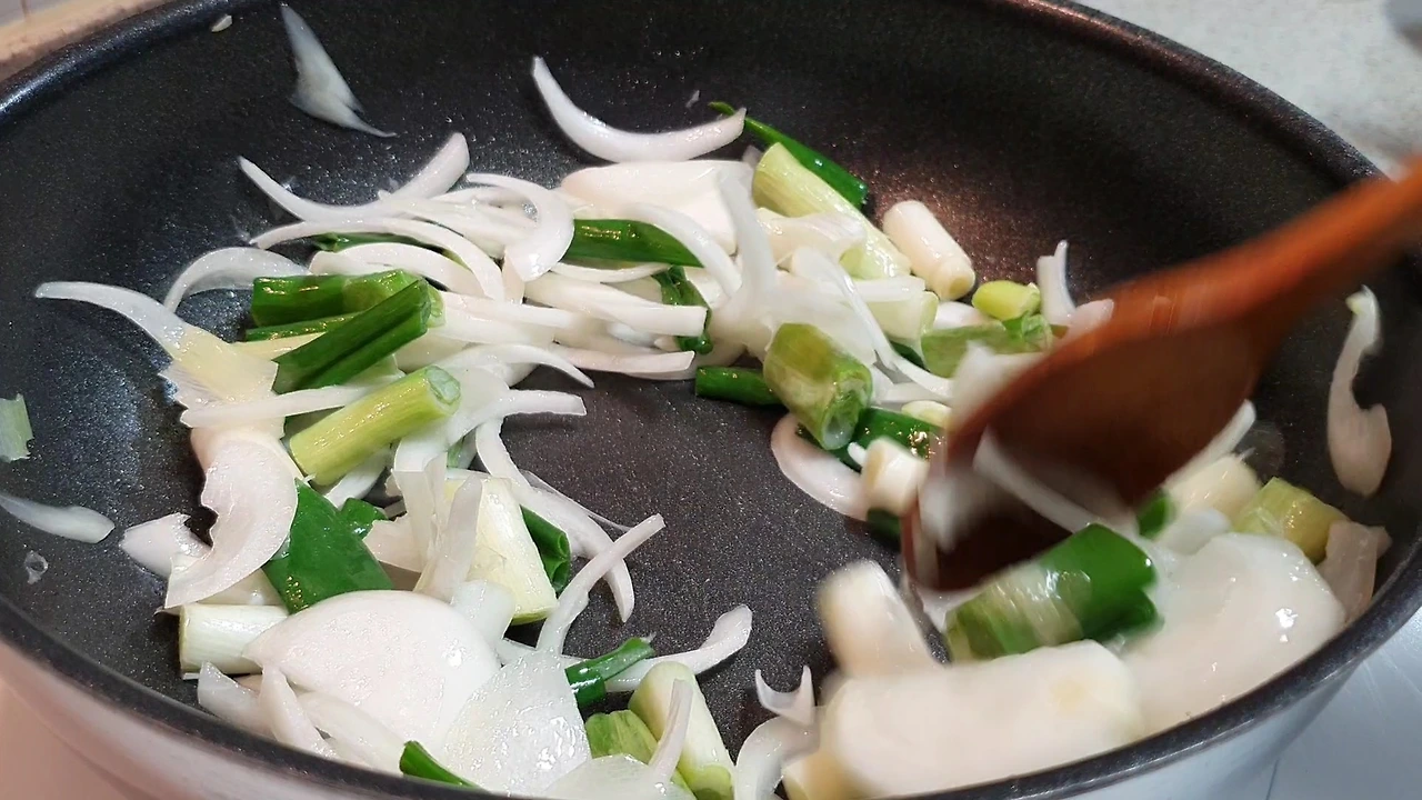 충분히 볶아주세요 양파와 대파의 향이 나오면 됩니다.