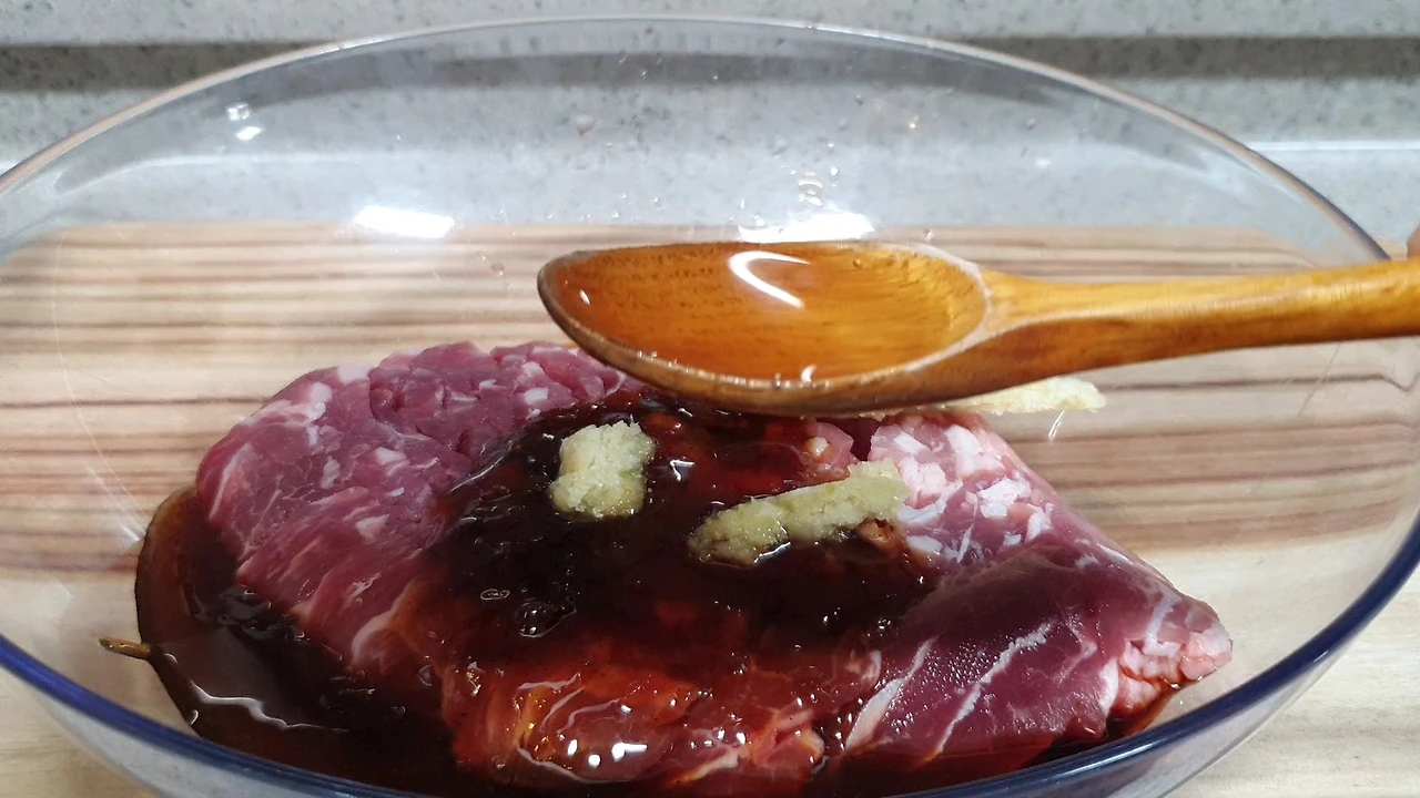 소불고기양념5스푼 진간장4스푼 마늘1스푼 맛술2스푼을 넣어서