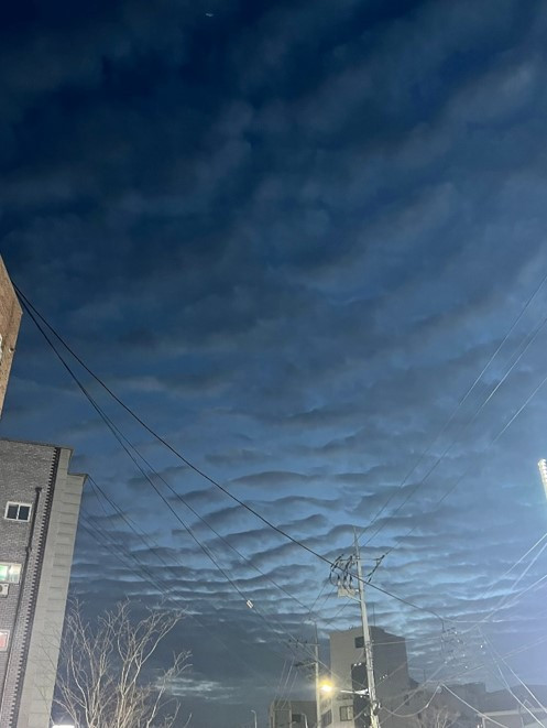 처음에는 양 떼의 모습이 많이 보였는데 자꾸 보니, 파도의 모습도 보이는 것 같아서 파도 구름으로 지었습니다. 날씨가 많이 풀려서 산책하고 돌아오는 길에 구름이 너무 예뻐서 찍어봤습니다. 주말이 끝나 가서 아쉬웠지만, 산책하면서 본 풍경이 예뻐서 시간 가는 줄 모르고 걷다가 돌아왔습니다. by K. 주원