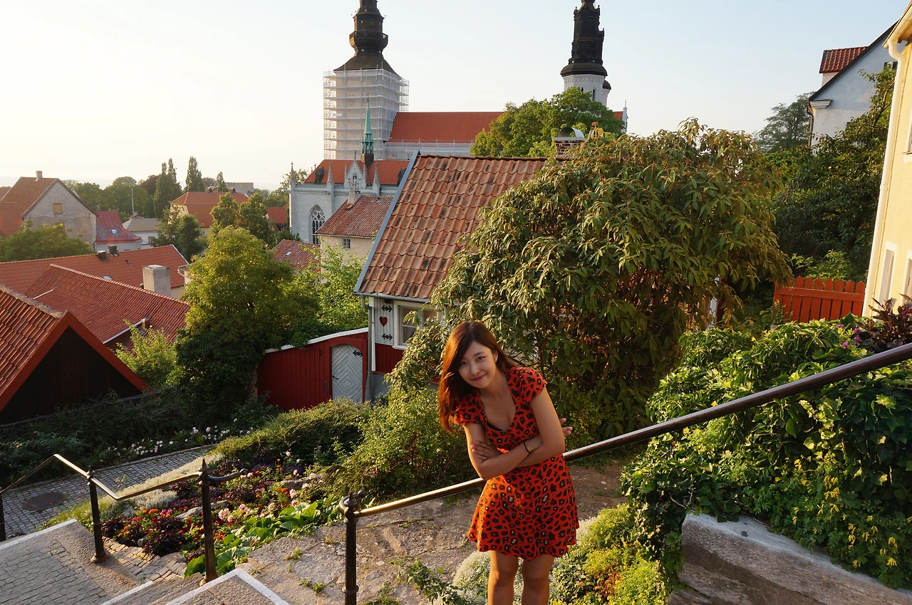 그녀는 여름 휴가지로 스웨덴을 택했고 고틀란드에 대한 자료를 보게 되었다고 한다. 그러나 혼자 가기가 부담스러워 카페에서 동행을 구하고 있었다. 나는 이 시기에 비스뷔를 가는 또 다른 한국사람이 있다는 것에 신기해하며 그녀에게 연락했고 우리는 마침내 비스뷔의 오래된 성곽 입구 아래에서 만나게 되었다.