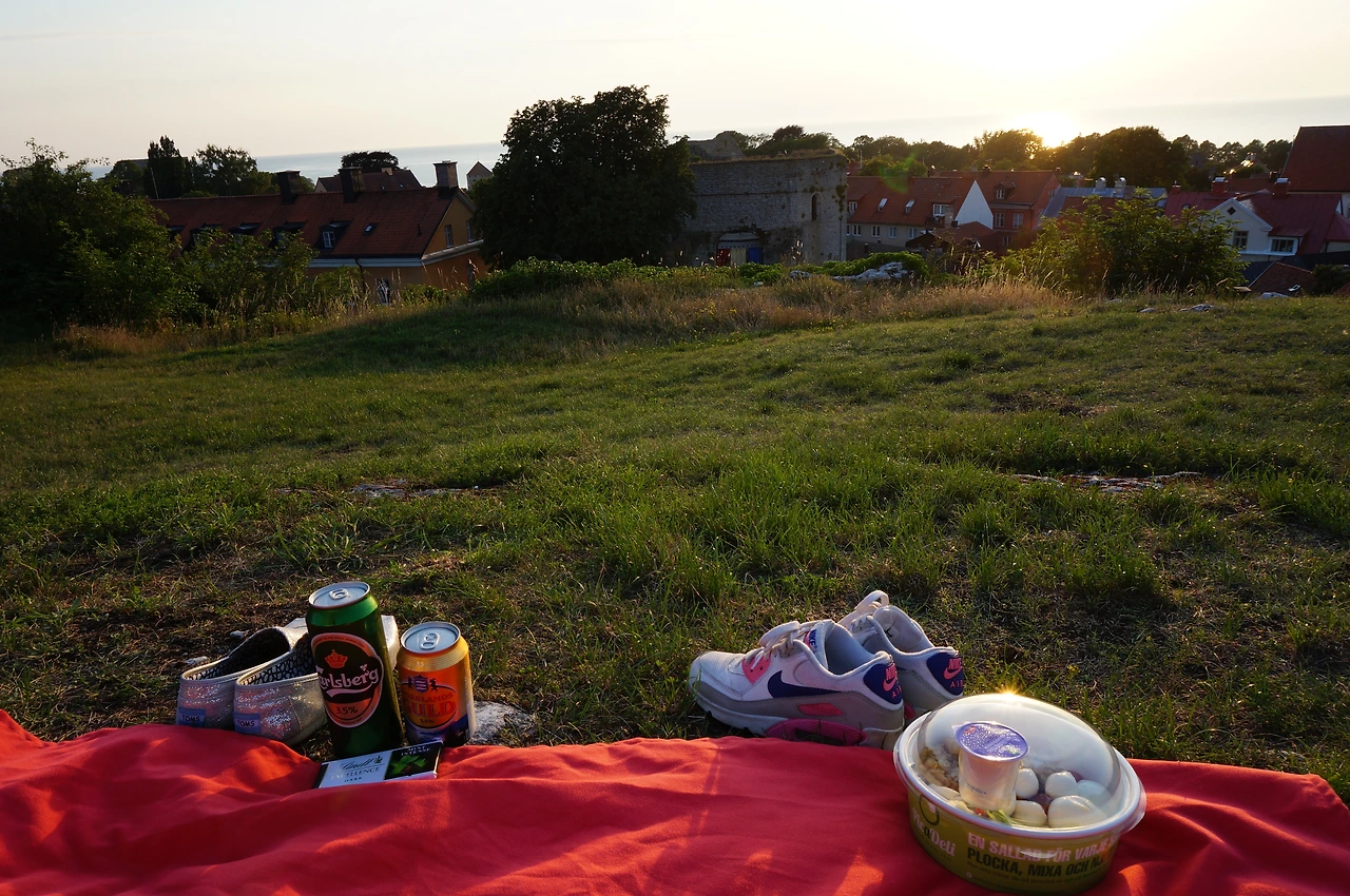 우리는 비스뷔의 해변을 걸으며 비스뷔의 여름을 만끽했다. 뜨겁긴 했지만 광활한 바다를 보니 괜스레 가슴이 뭉클해온다. 철썩이며 다가오는 파도가 우리를 환호하는 박수소리 같다. 저녁시간이 다가오자 우리는 마트에서 가볍게 장을 보고 동네 한 바퀴를 다시 돌아본 후 비스뷔 시내가 내려다 보이는 언덕으로 걸어갔다. 언덕에 보자기 하나를 깔고 우리는 널 부러진다. 개구리처럼 몸을 웅크렸다 사방으로 펼치며 풀밭의 차가운 감촉을 느낀다.