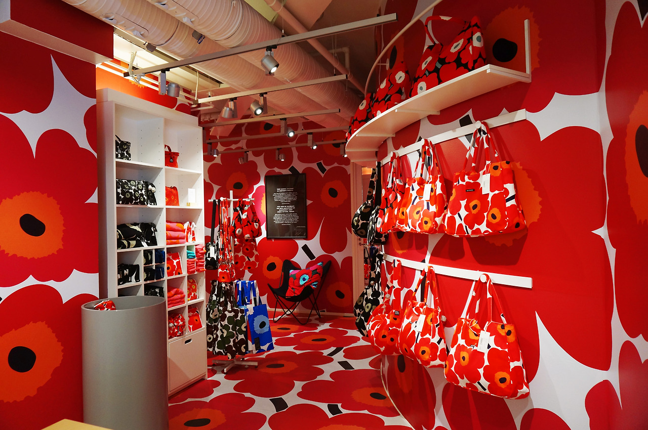 키아즈마 안에는 마리메코의 디자이너들, 마리메코와 콜라보레이션을 한 작가들의 전시가 진행되고 있었다. 또한 맨 위층에는 키아즈마에서 선정한 올해의 젊은 작가들 전시가 보인다. 핀란드의 라이프스타일을 보여주는 대표적인 브랜드인 마리메꼬는 비비드 한 컬러와 다양한 패턴들, 특히 꽃 모양의 패턴이 유명한 브랜드이다. 우리나라에도 신사동과 판교 등에 매장이 들어와 인기를 끌고 있는 이 브랜드는 1960년대 재클린 케네디가 애용했던 브랜드로도 유명하다. 영화 카모메 식당에서 공항에서 가방을 잃어버린 마사코가 헬싱키에서 처음으로 구입한 옷의 브랜드 역시 마리메꼬이다. 이렇게 전 세계적인 사랑을 받고 있는 브랜드 마리메꼬는 수 많은 작가들, 디자이너들과 함께 엄청난 양의 창작물을 세상에 내놓았다.