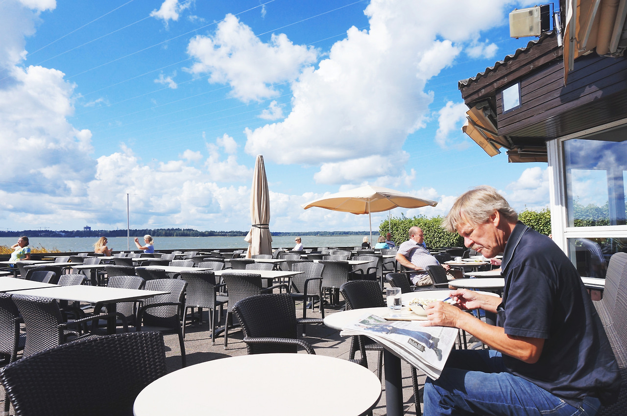 바다를 바라보면 맑고 푸른 하늘을 본다. 커피 한잔에 시나몬 롤을 입에 넣는다. 씁쓸한 커피와 쌉쌀한 계피향, 달콤하고 두툼한 설탕이 입안에서 서로를 껴안아 더욱 깊은 향을 뿜어낸다. 눈이 번쩍 뜨이는 황홀하고 거창한 맛은 아니지만, 언제 먹어도 질리지 않는 시나몬 롤의 달콤 쌉싸름함이 참으로 헬싱키를 닮았다. 조용하고 한적한 바다는 내가 천천히 흘러가는 구름을 따라 시선을 옮기는 동안 나의 시간을 이끌고 가고 있었고, 금세 1시가 되었다.