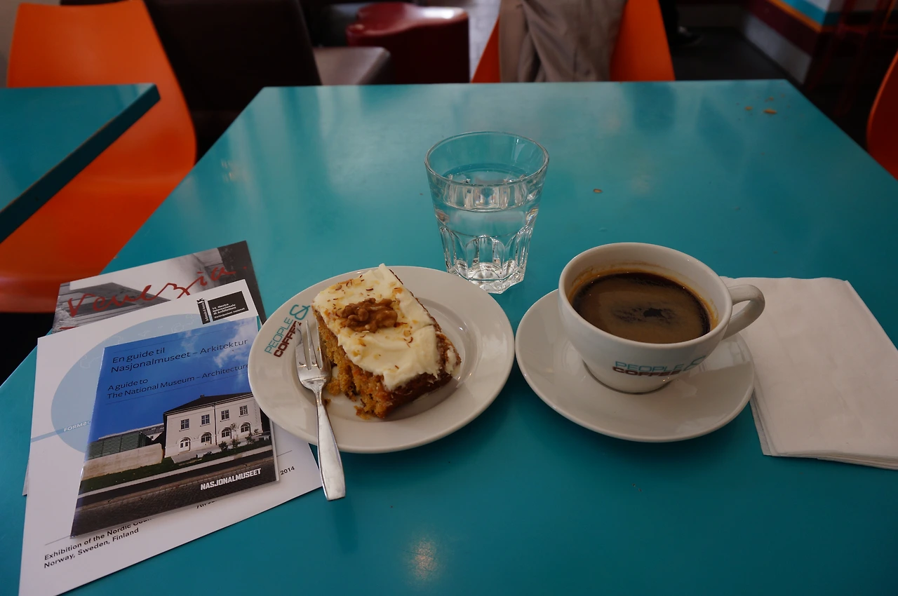 포크 한 번에 4분에 1씩 풍덩 잘려 사라져가는 조그만 케이크. 그래서인지 입 안에서 좀 더 오래 맛을 음미하고 천천히 이로 조각을 부순다. 커피 한 모금에 오슬로의 시간이 반나절밖에 남지 않았다는 것을 상기한다.