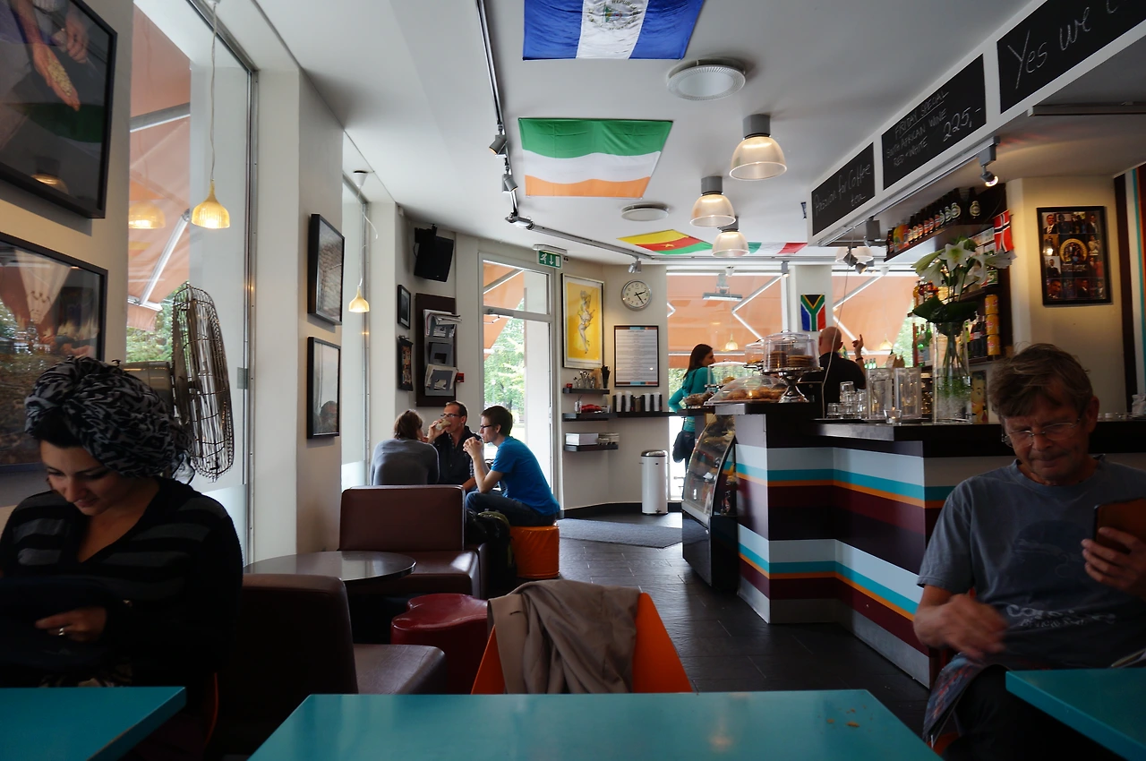 저 멀리 People and Coffee라고 적힌 작은 간판이 보인다. 론리 플래닛을 비롯 트립어드바이저에서 추천했던 피플 앤 커피. 이국적인 분위기, 브라질, 멕시코 등 다양한 남미 국가들의 국기들이 걸려 이 곳의 커피가 어디에서 오는지를 알려주는 것만 같다.
