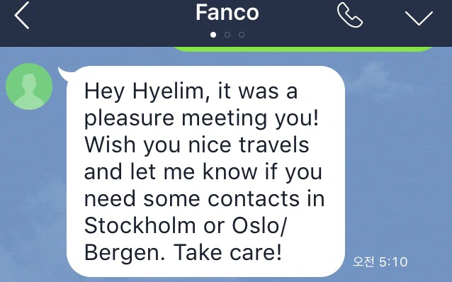 “자신감을 가져. 네 여행은 성공할 것이 분명해. 그리고 네가 하고 싶은 것도 다 할 수 있을 거야. 네가 지금 부끄럽다고, 모자란다고 말하는 영어가 지금의 충분한 의사소통을 끌어내고 있잖아? 시도하지 않은 것, 자신이 가진 것을 너무 과소평가하지 마. 네 안의 것들은 네가 생각하는 것 이상일 꺼야. 그러니 그걸 믿고 잘 해내 봐.”