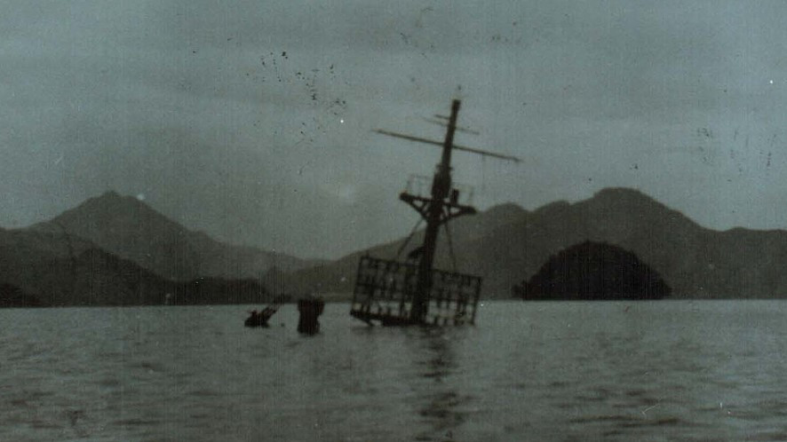 폭침된 마이즈루만 바다를 응시하고 있다.