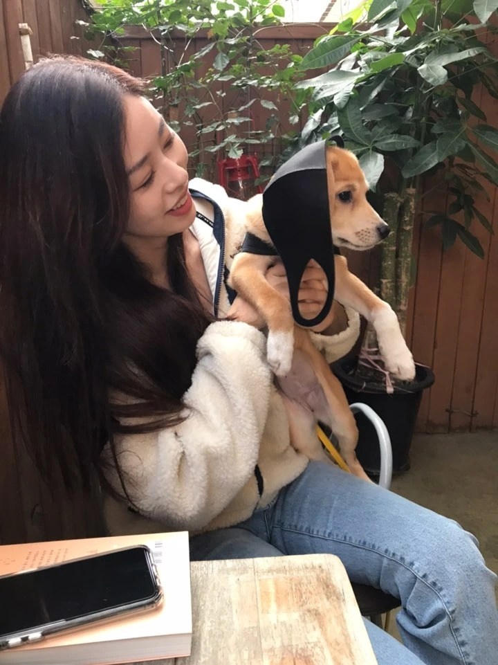 크림이 가 내 마스크를 장난감으로 갖고 놀고 있었네, 푸핫!