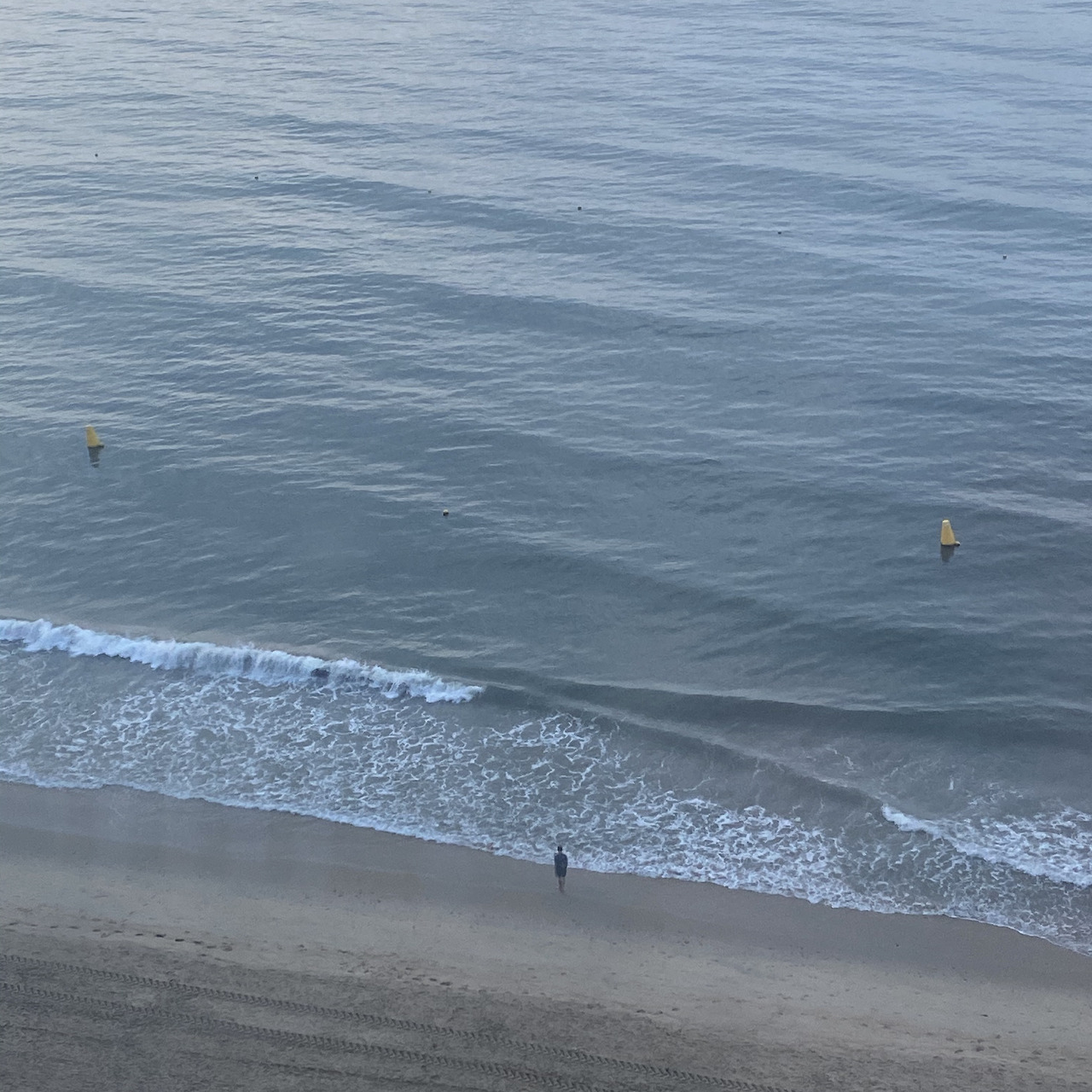 창밖을 내다보았다. 벌써 바닷가 산책하러 나온 사람이 보였다. 살짝 파도에 발을 담그기도 하고 장난스럽게 아무도 없는 바다를 홀로 독차지하고 있었다. 누군가 자신을 내다보고 있다는 사실도 모른 채. 바다는 모두의 것이다. 일찍 일어나서 바다를 독차지하는 것은 자신의 몫이다. 곧장 바다가 시끌시끌했다. 아이들도 수영복에 튜브를 끼고 나오고 있었고 부모님도 뒤따라가는 모습이 보였다. 어르신들도 산책하러 나오고 사람들도 하나 둘 이른 아침 바다를 보기 위해 나오고 있었다. 친구는 여전히 쿨쿨 잘 잤다. 나는 바다를 바라보며 아침 드로잉을 했다. 아침의 바다는 새벽보다 조금 시끌했지만 생기를 되찾아 보기 좋았다. 누군가의 바다에서 모두의 바다로 회귀하고 있었다.