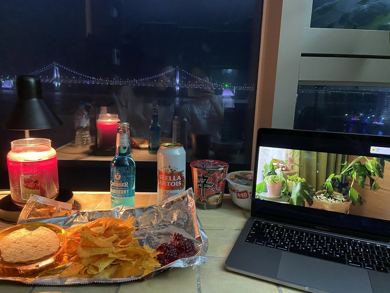 숙소에서 친구를 만나기로 했다. 캐리어를 끌로 숙소로 갔다. 광안대교가 보이는 숙소였다. 숙소 바로 앞에는 바다였다. 바다이다. 바다. 혼자서 아무와 대화 없이 혼자만의 시간을 보내고 이제 막 수다가 필요했다. 그때 마침 등장해준 나의 친구. 함께 늦은 저녁을 먹으러 나갔다. 밤바다를 끼고 식당을 찾아 걸으며 우리의 대화는 끊이질 않았다. 시원하게 물회를 먹고 숙소로 그냥 들어가긴 아쉬워 바다를 조금 걷다가 야식거리를 사들고 들어갔다. 우리에겐 전망 좋은 뷰가 기다리고 있으니까. 숙소에서 우리만의 파티를 열었다. 노트북을 챙겨 온 건 신의 한 수였다. 넷플릭스로 잔잔한 영화를 틀어놓고 맥주와 간단한 간식, 그리고 우리의 대화면 충분했다. 조명 몇 개만 켜 두고 나머지 불은 다 꺼버렸다. 광안대교의 반짝이는 다리처럼 우리의 밤이 사랑스러웠다. 새벽 3시쯤이 되어서야 우리도 잠을 청했다. 침대 옆에서 선명하게 들리는 파도소리는 참 좋았다. 파도소리를 가만히 듣고 있다 보니 스르르 눈이 잠겼다.